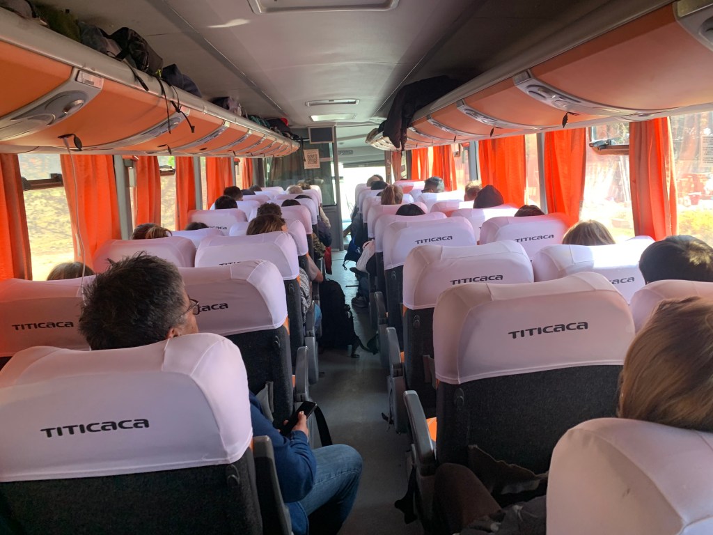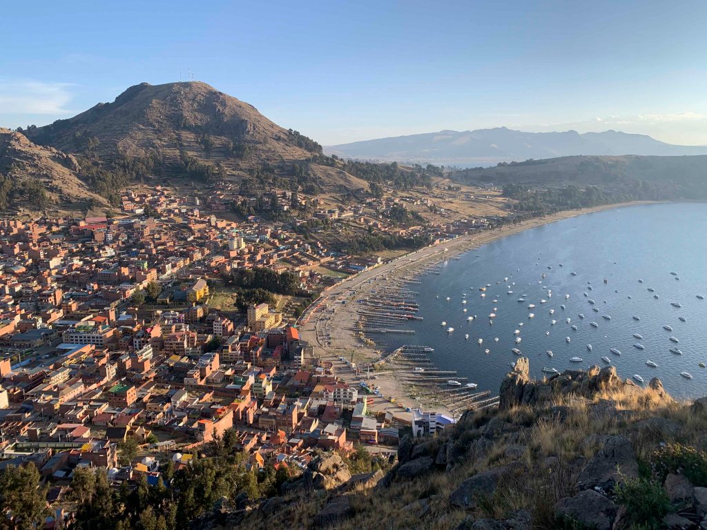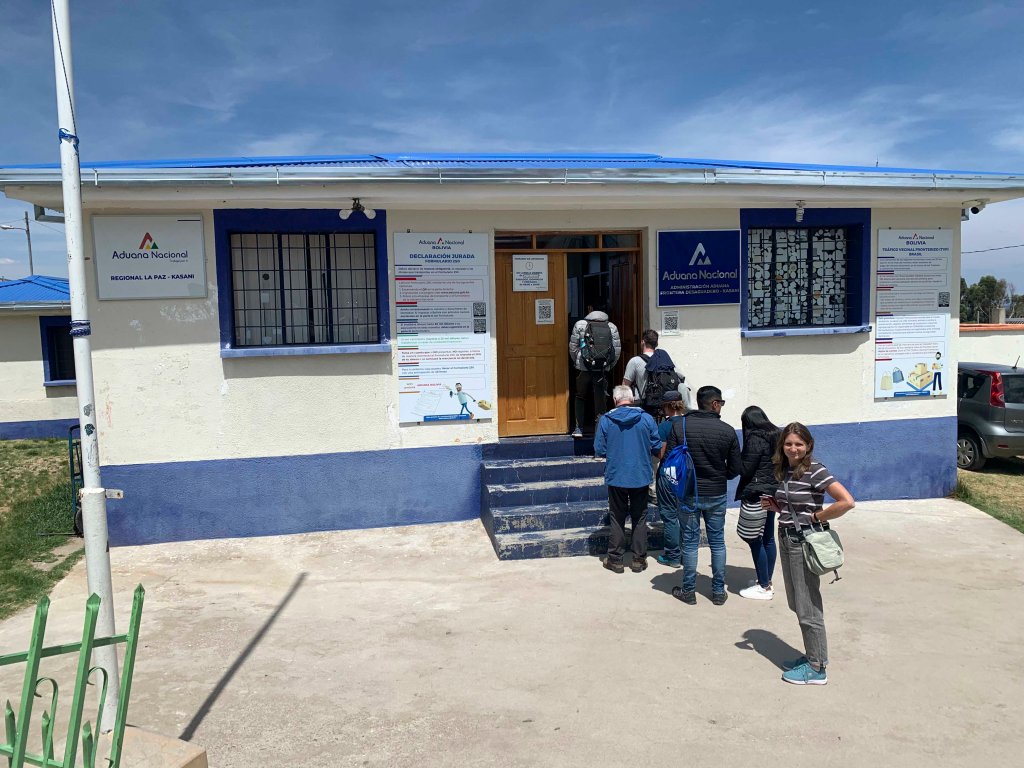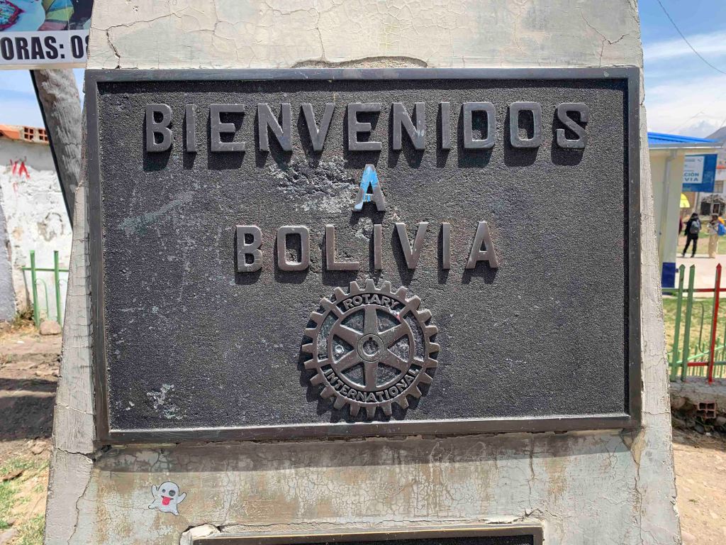 Wir hatten uns im Vorfeld einige Gedanken über die Einreise nach Bolivien gemacht und allerlei über Einschränkungen und Vorschriften gelesen. Umso erfreuter und erleichterter waren wir, als sich herausstellte, dass sich niemand für Impfzeugnisse oder Angaben zu mitgeführten Medikamenten interessierte oder gar unser Gepäck kontrollieren wollte. Tatsächlich fuhren wir ganz entspannt mit dem Bus von Puno zur Grenze im Dorf Kasani, wo man zu Fuß aus Peru ausreist, das heißt, man holt sich einen Ausreisestempel im entsprechenden Büro. Danach spaziert man mit allen anderen Businsassen ein paar hundert Meter zum bolivianischen Grenzposten, wo es den Einreisestempel für Bolivien gibt. – Das war’s. ¡Adios, Peru! und ¡Hola, Bolivien!