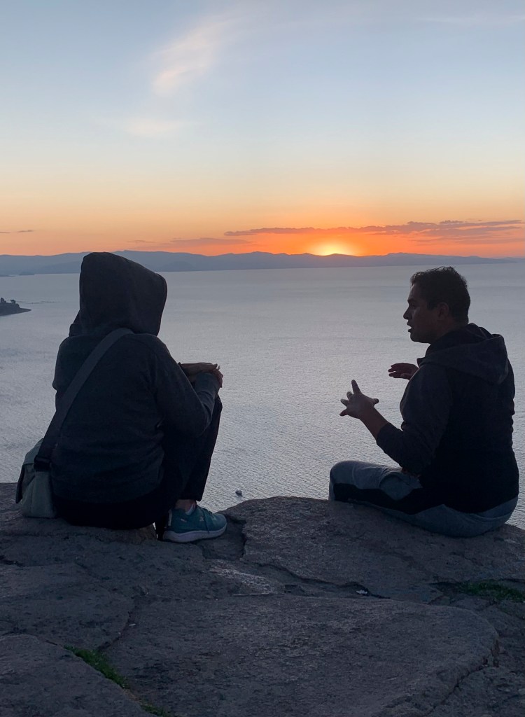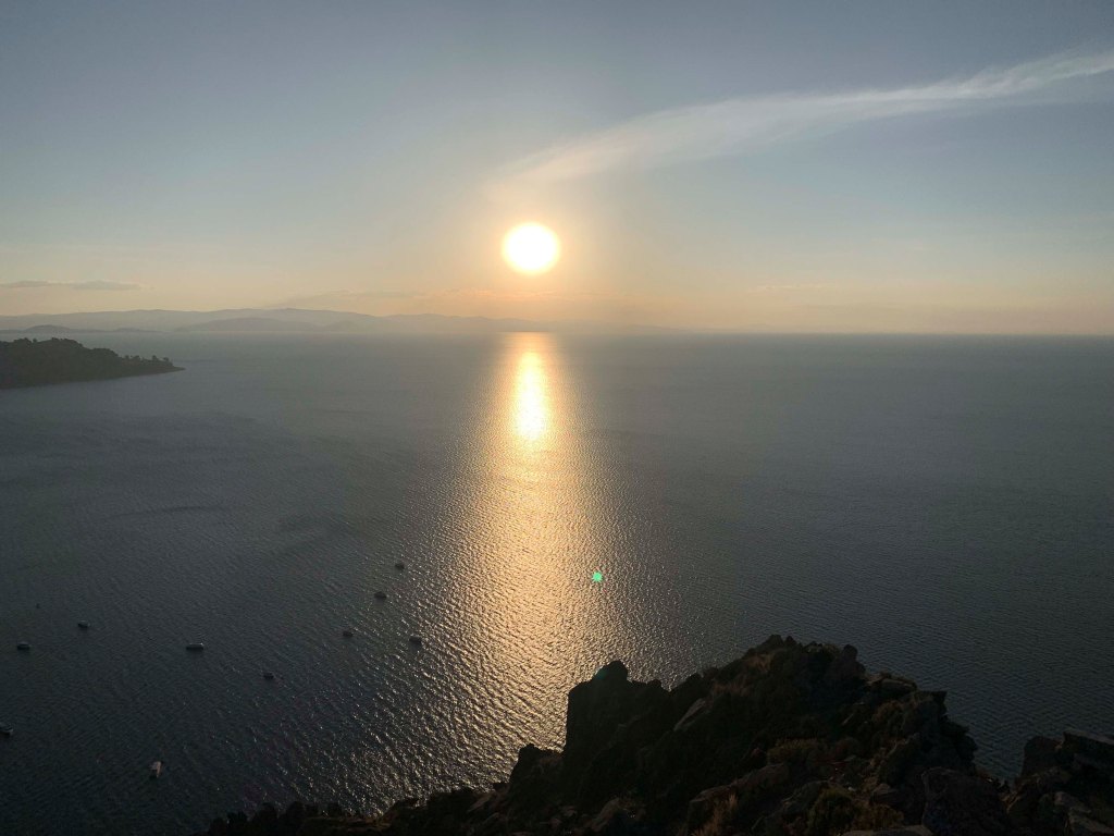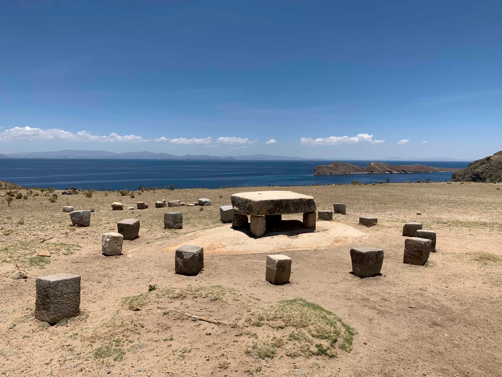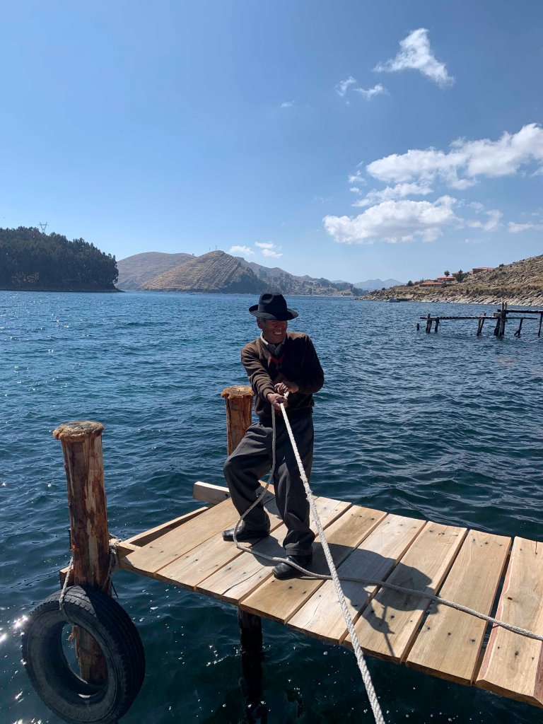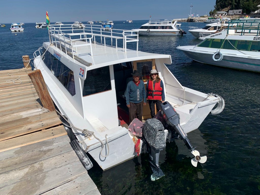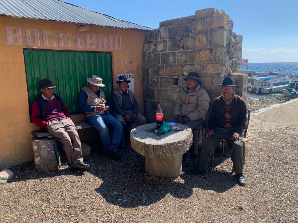 Unser Kapitän erwartete uns am nächsten Morgen – wir haben auf der Insel übernachtet – im entspannten Gespräch mit Kollegen und brachte uns noch zum Sonnentempel ganz im Süden, bevor wir wieder Copacabana ansteuerten.