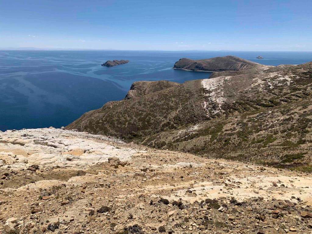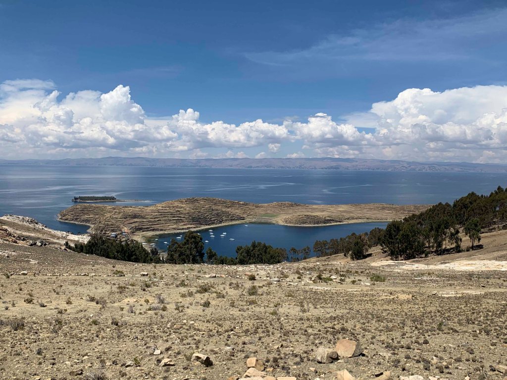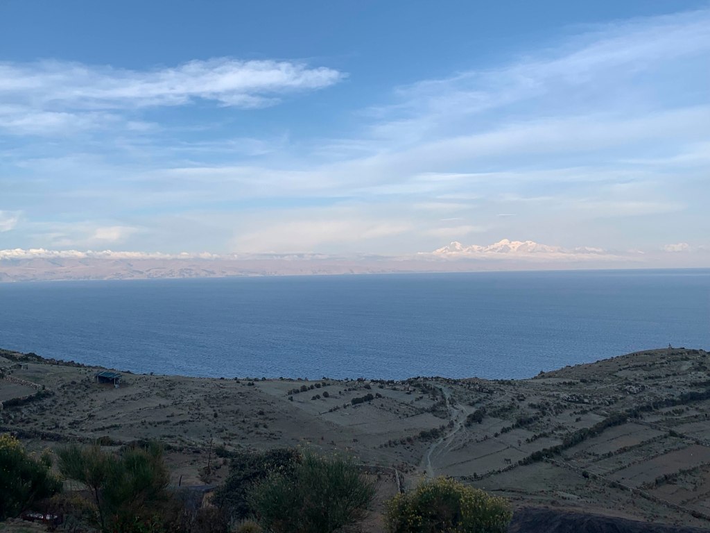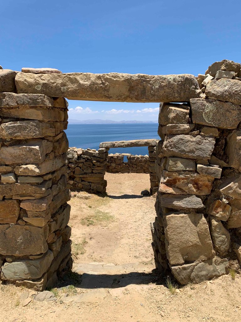 Ein wunderschönes Ausflugsziel von Copacabana aus ist die Isla del Sol. Zusammen mit der nahegelegenen Isla de la Luna diente die Insel den Inkas für ihre Schöpfungsgeschichte: Hier sollen Sonne und Mond auf die Erde gekommen sein, um die Menschen zu erschaffen. Es gibt sogar einen ausgehöhlten Felsen, in dem die Sonne geschlafen haben soll und große „Fußabdrücke“ von ihrem Marsch über die Insel. – Geblieben ist ein schöner Wanderweg von einem Inselende zum anderen, den man auf keinen Fall verfehlen kann (Das war die große Sorge unseres Guides, als wir allein gehen wollten). Die Strecke bietet eigentlich ununterbrochen herrliche Ausblicke auf den See und die fernen Ufer Perus und Boliviens, eindrucksvolle Inkaruinen, süße Esel und reichlich Sonne… Außerdem gibt es sehr nette Kioske von Inselbewohnern am Wegesrand! Mitten auf dem Inselrücken kochte eine ältere Frau uns frischen Cokatee, der uns Energie und Schwung für die zweite Hälfte des Weges gab.