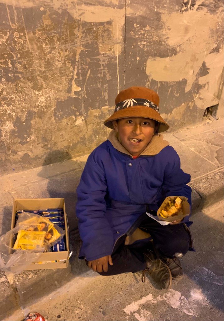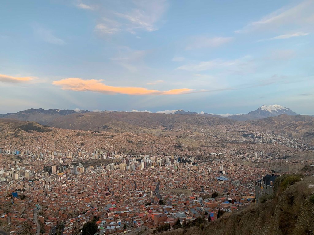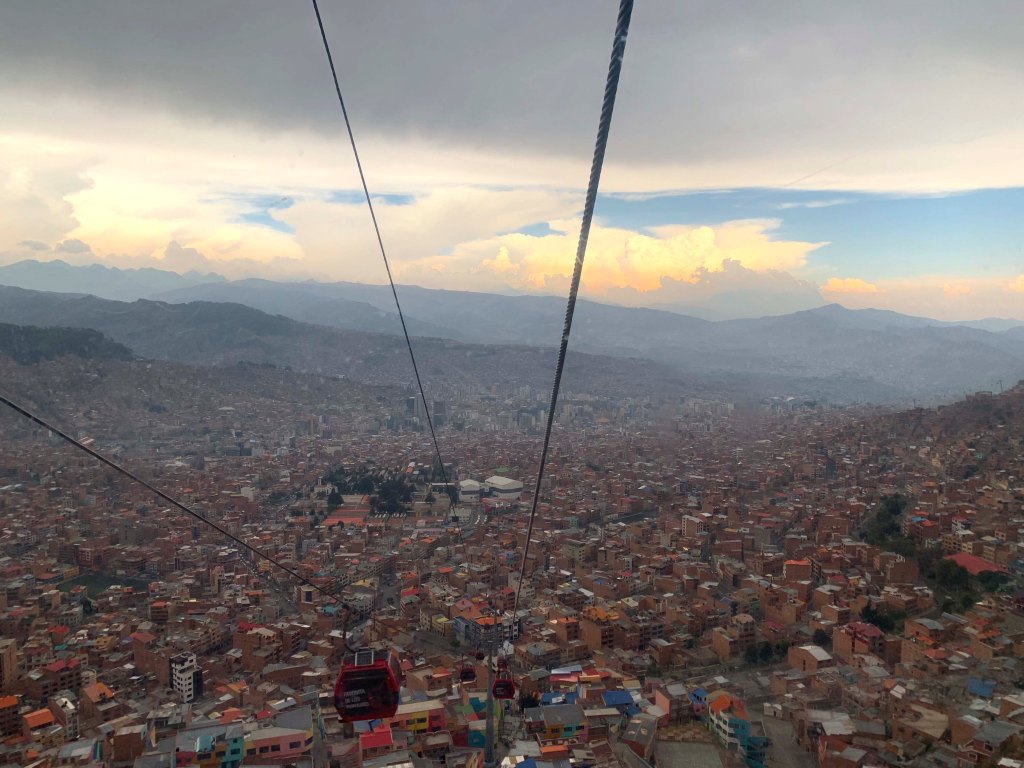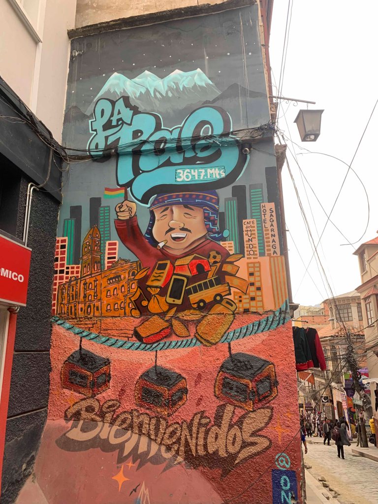 Wir haben eine Aussage über La Paz entdeckt, die von der „unmöglichsten Stadt der Welt“ spricht, und das trifft eigentlich perfekt zu. Wenn man mit der Seilbahn von El Alto aus über die Kante der Hochebene in den Kessel schwenkt, ist man erstmal überwältigt: Ein Meer von Häusern tut sich auf, das überall an den Hängen wild nach oben schwappt, dabei mal überraschend ein Stück auslässt oder anderswo unglaublich steil hinaufklettert. Man kann nicht fassen, dass La Paz nicht einmal eine Million Einwohner hat, so weit erstrecken sich die bebauten Flächen. Im Weiteren, nachdem wir aus der Seilbahn ausgestiegen waren und von der Estación Central zu unserem Hotel im Zentrum spazierten, waren die ersten Eindrücke unschön: Sehr viel Schmutz, überall heruntergekommene Gebäude, wirre Stromleitungen, Lärm… Wir beschlossen, den ersten Abend im Hotel zu verbringen und nicht mehr in das wilde Treiben hinauszugehen.