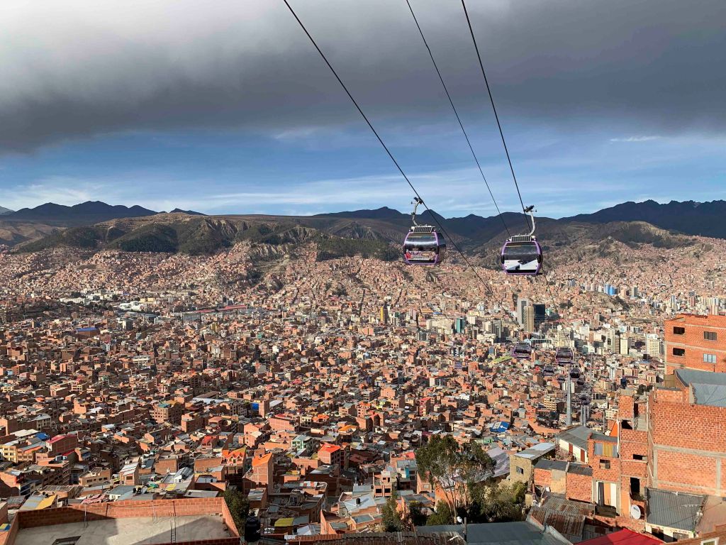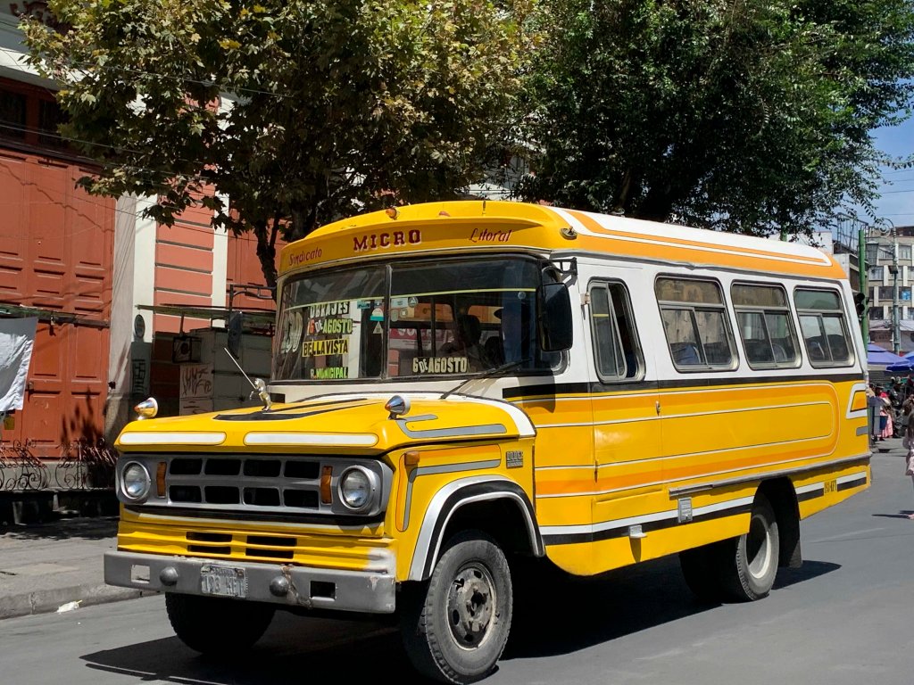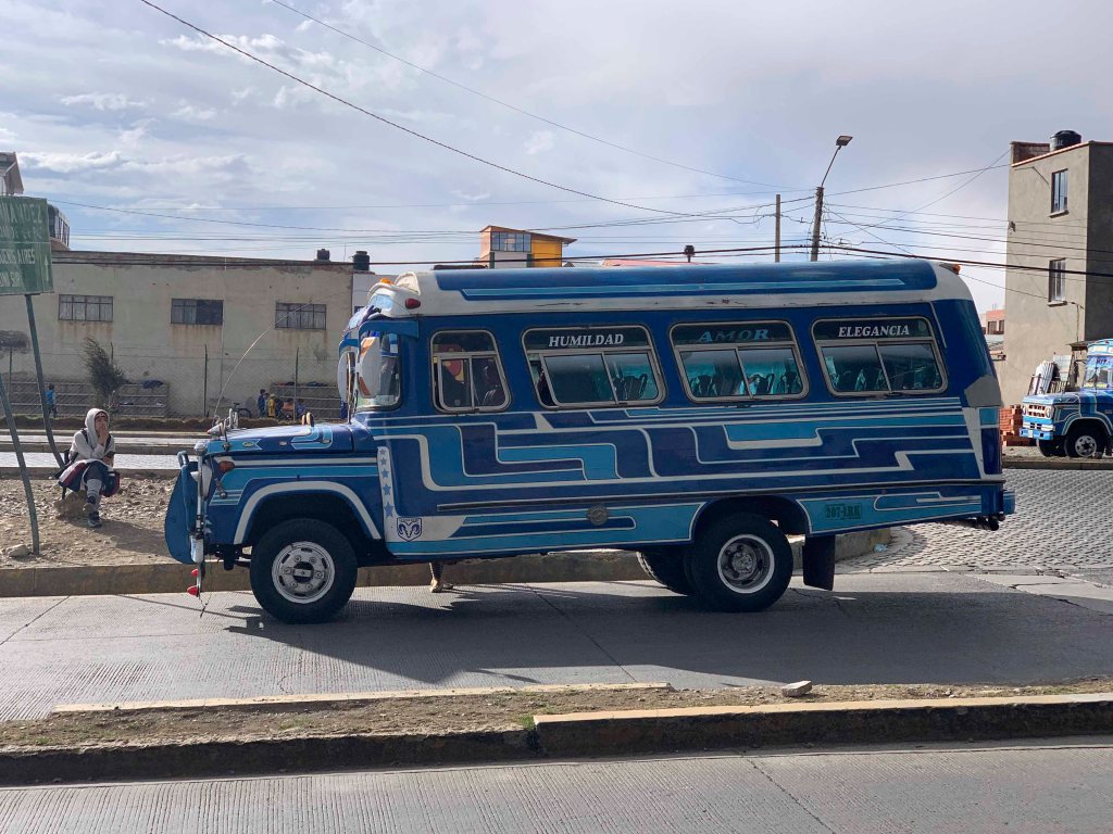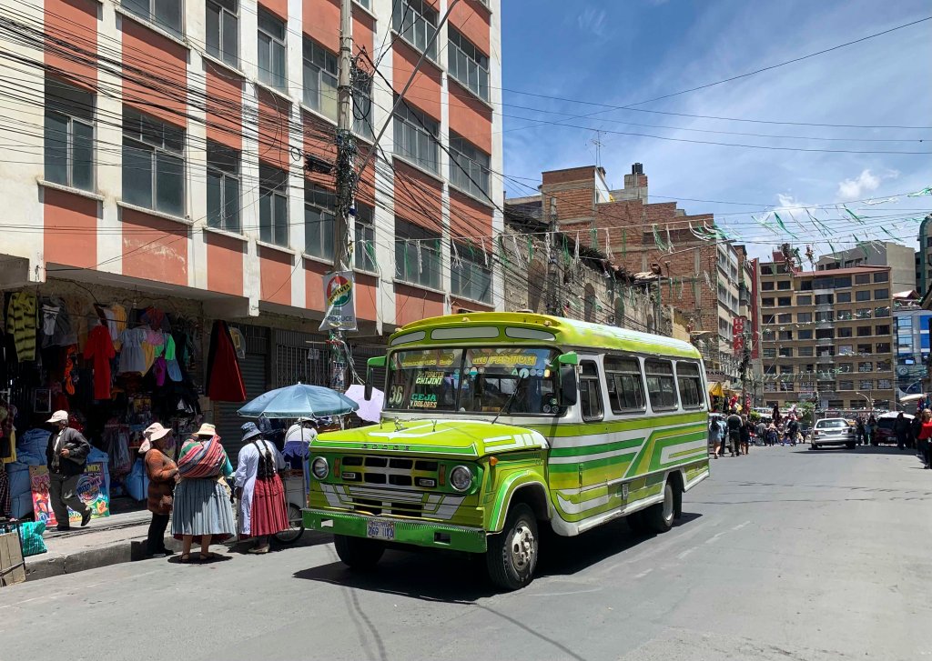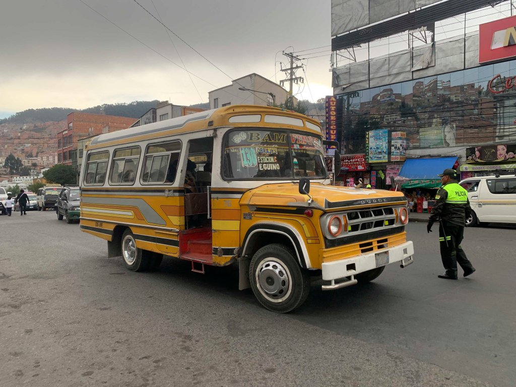 Natürlich leidet La Paz wie alle Großstädte der Welt unter ständigem Verkehrsstress… Aber es gibt charmante Ansätze, dieser Probleme Herr zu werden: Das bereits genannte Seilbahnnetz bietet nicht nur Touristen die Gelegenheit, sich Eindrücke von der Stadt und einen ersten Überblick zu verschaffen, sondern befördert auch täglich viele Bewohner aus den Randvierteln günstig und schnell zu ihren Arbeitsplätzen. Und es gibt eine ganze Flotte von kunterbunten Oldtimer-Bussen, die scheinbar liebevoll gepflegt werden und über die wir uns immer wieder gefreut haben. Auch sonst bleibt manches uralte Fahrzeug mal mehr, mal weniger herausgeputzt im Einsatz und dient außer als Transportmittel ebenfalls als Blickfang.