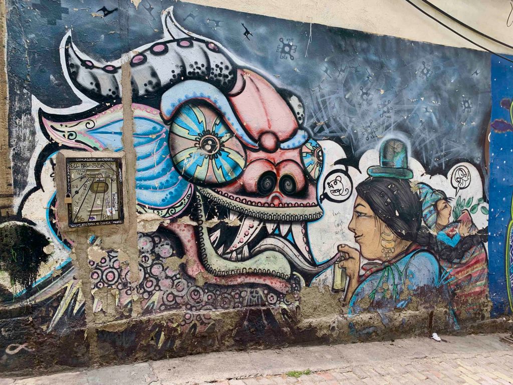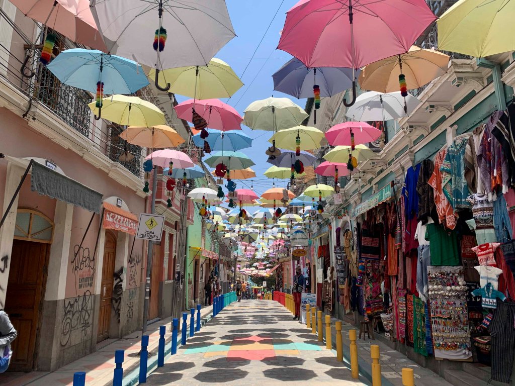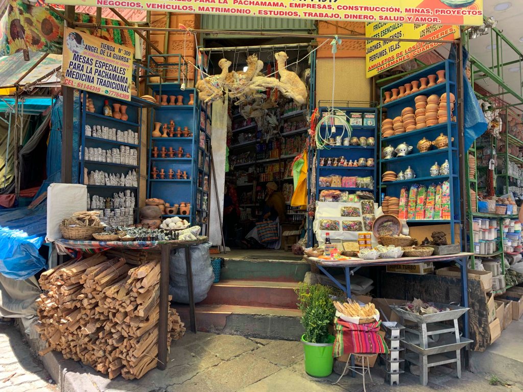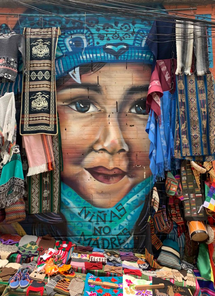 Am nächsten Tag sah die Welt schon ganz anders aus! Wir schlenderten durch die Straßen rund um die Kirche San Francisco, entdeckten viele fantastische Graffitis, kreativ gestaltete Gassen, bunteste Läden sogar in Abrisshäusern und natürlich die irren Stände und Geschäfte des Hexenmarktes. Dort können sich Frau und Mann getrennt oder gemeinsam über allerlei höchst abergläubische Behandlungsweisen von Krankheiten bis zu sexuellen Problemen beraten lassen. Sicher steckt in den oft pflanzlichen Mitteln auch Heilkraft, die „Hexen“ lassen sich aber nicht gern fotografieren…