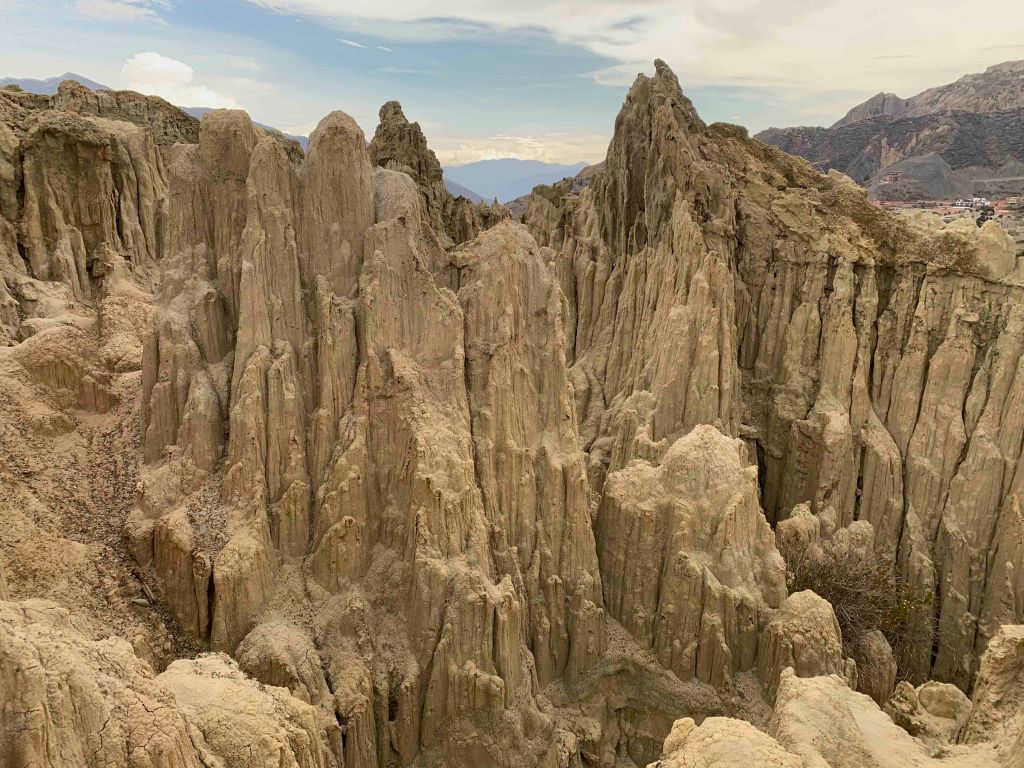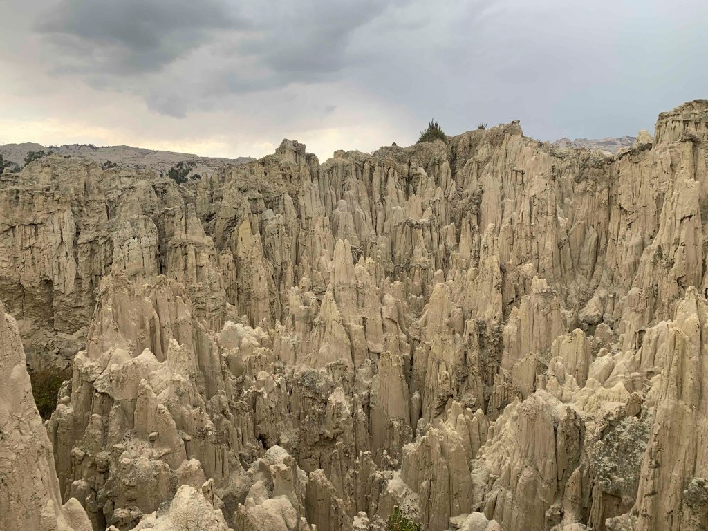 Wie oben erwähnt befindet sich das Valle de la Luna mitten in der Großstadt und bildet trotzdem eine ganz eigene bizarre Welt. Ein bisschen sieht es so aus, als hätten Riesenkinder ein großartiges Kleckerburgenspiel gespielt… Türmchen und Türme bilden verschiedenste Gebilde, mal sehen sie aus wie Pilze, mal wie Versammlungen von Gespenstern. Man vergisst völlig, dass man in einer Millionenstadt ist. - Man kann auf gut ausgebauten Rundwegen durch das Felsengewirr spazieren und dann hinterher wieder erfüllt und entschleunigt in die wuselige, laute Stadt zurückkehren.