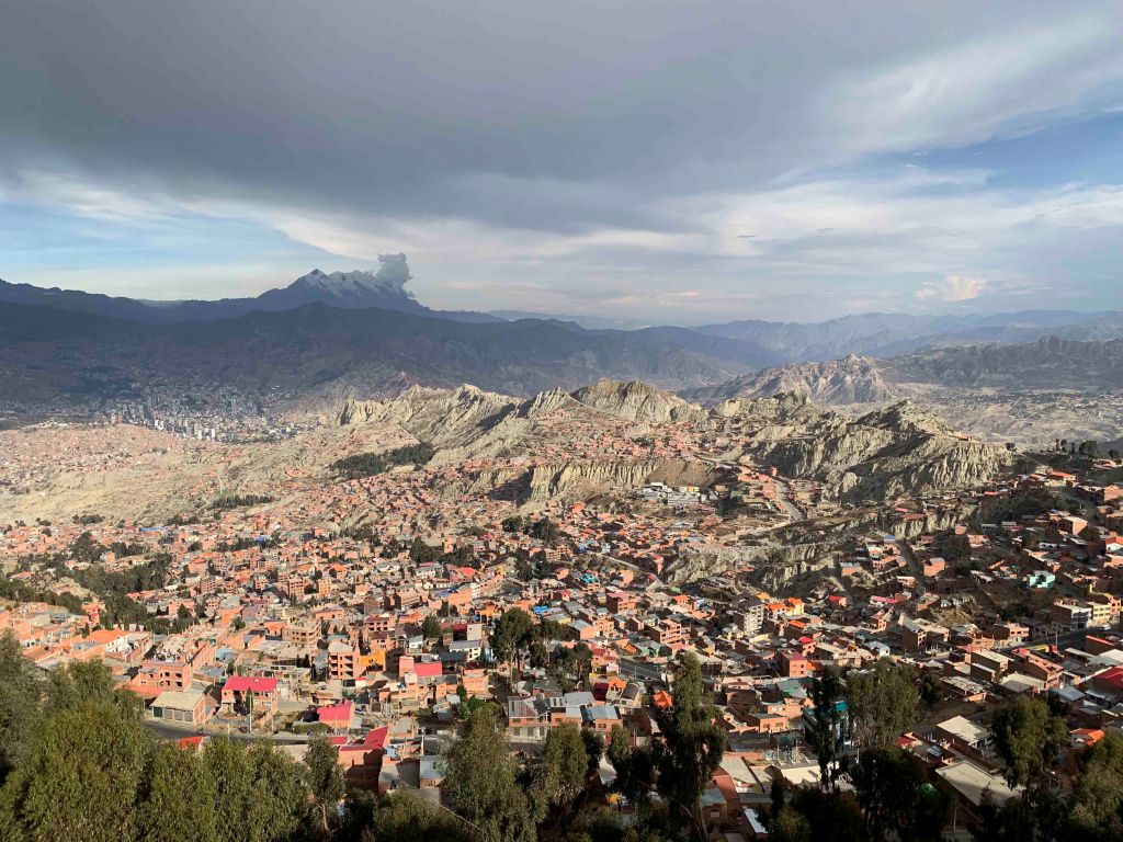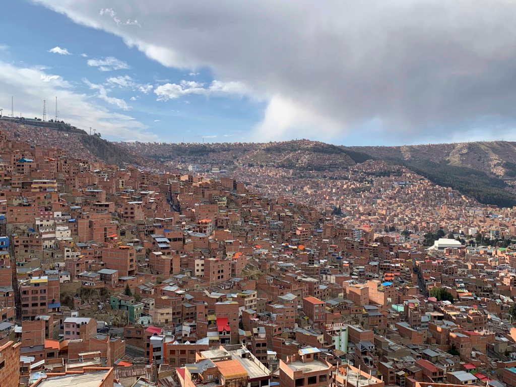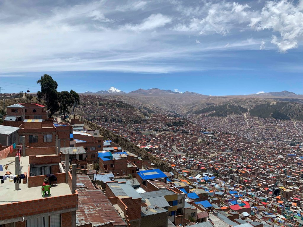Uns gefällt es immer gut, eine Stadt von oben anzuschauen, einfach über dem Gewimmel zu sein und den Eindruck der vielen Dächer zu genießen. Für La Paz gilt das in einzigartiger Weise. Wir haben nie zuvor eine Stadt mit solchen Höhenunterschieden und in solcher Ausdehnung gesehen. Die Kombination aus unzähligen kleinen ziegelroten Gebäuden, Hochhäusern, die sich in der Stadtmitte gruppieren, den schroffen Felsen des Valle de la Luna mitten in der Metropole und zum Teil schneebedeckten Bergen rundherum hat uns sehr fasziniert. - Dies zeigt sich darin, dass wir unmöglich nur ein oder zwei stellvertretende Bilder aussuchen konnten…