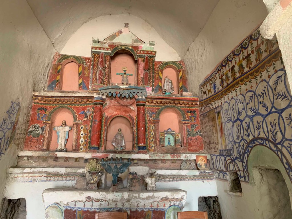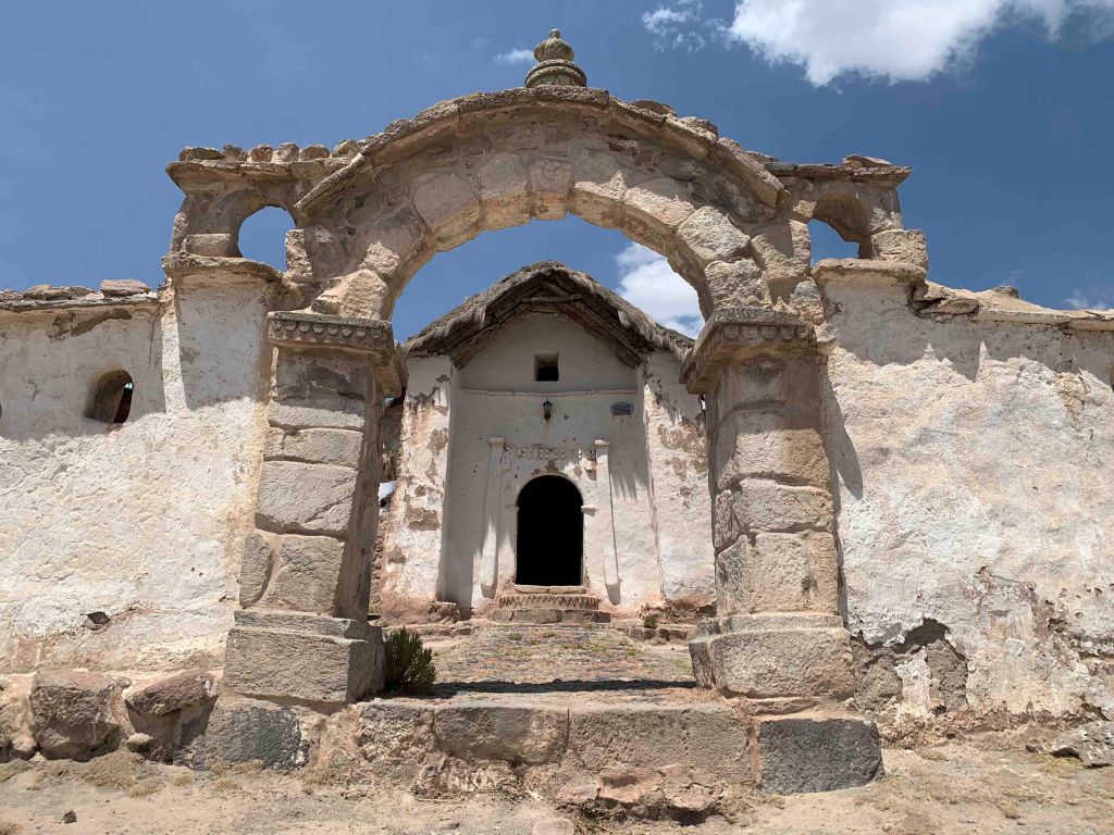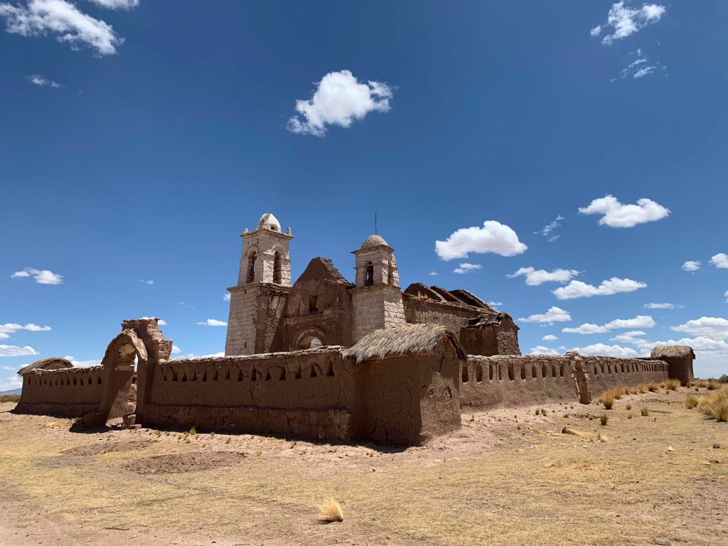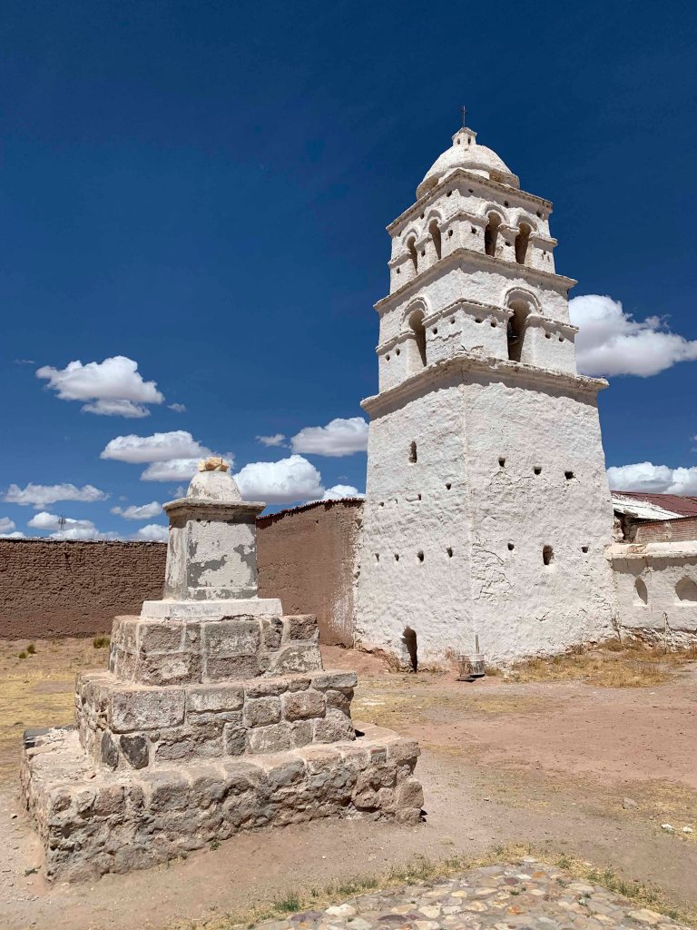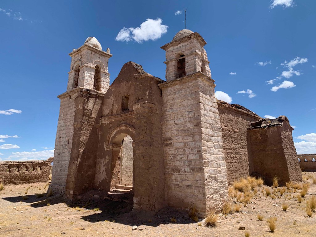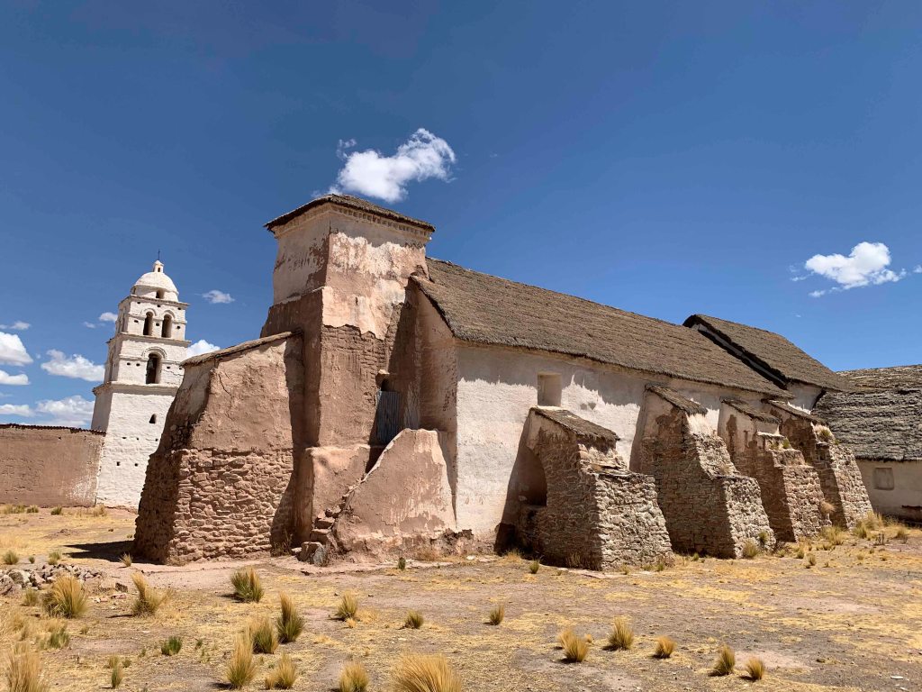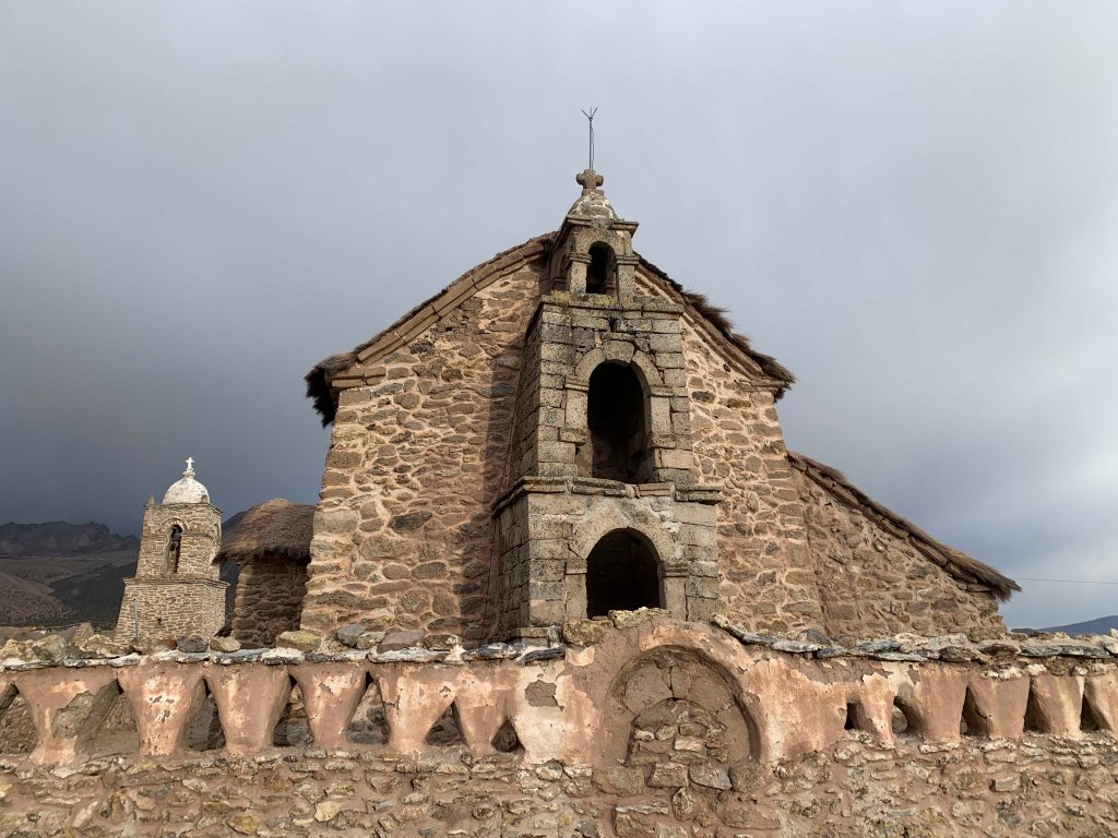 Die zweite Hälfte der Fahrt war kurzweilig: Zum einen entdeckten wir außerplanmäßig einen weitläufigen Bosque de Piedras mit verrückten Steinfiguren, zum anderen gab es Kirchen zu besichtigen. Während die erste ausgebrannt, aber noch als würdevolle Ruine interessant war, ist die zweite, Curahuara de Carangas, intakt und wegen ihrer wunderschönen Bemalung im Innenraum (die man auf keinen Fall fotografieren darf!) sogar als Sixtinische Kapelle Boliviens bekannt.