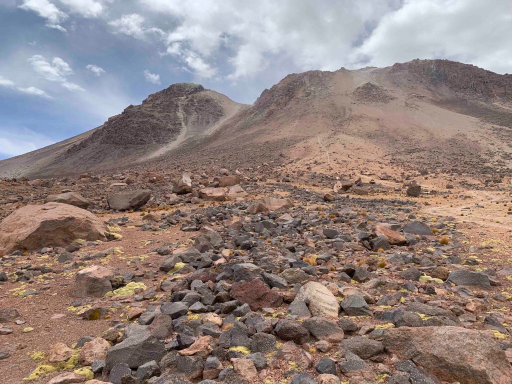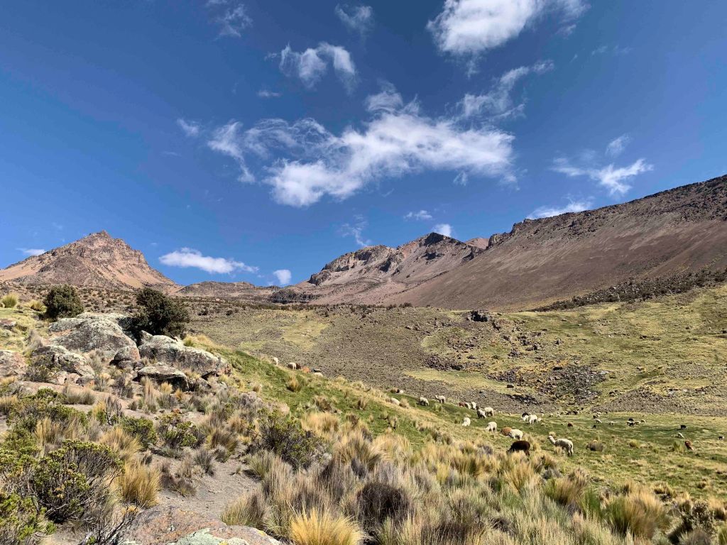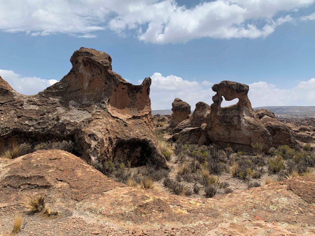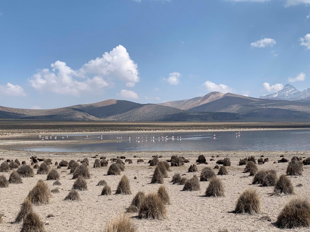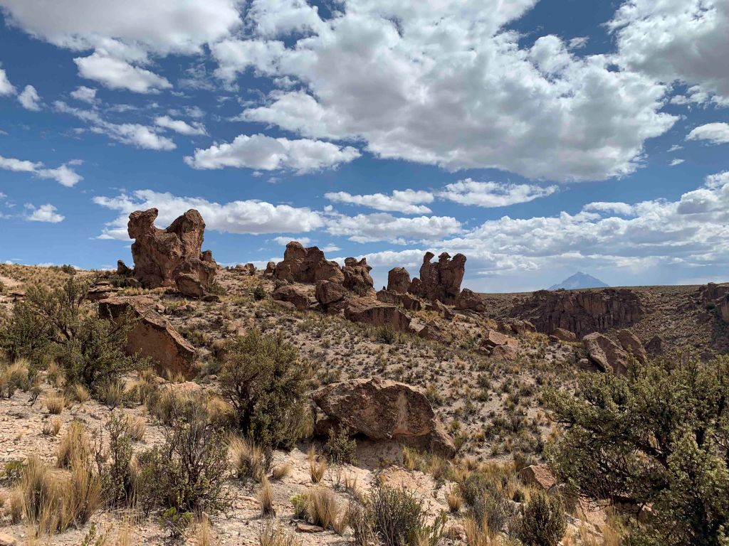 Immer weiter fuhren wir durch eine wunderschöne Landschaft nach Süden: Diese ist von großer Weite geprägt, in der die einzelnen Berge (oft Vulkane) sehr erhaben wirken. Ergänzt wird das durch bizarre Felsformationen und Pflanzen, die der Trockenheit standhalten wie Yareta, eine Art Moos, das ausschließlich auf Steinen wächst und den Einheimischen nicht nur als Brennstoff, sondern auch für medizinische Zwecke dient.