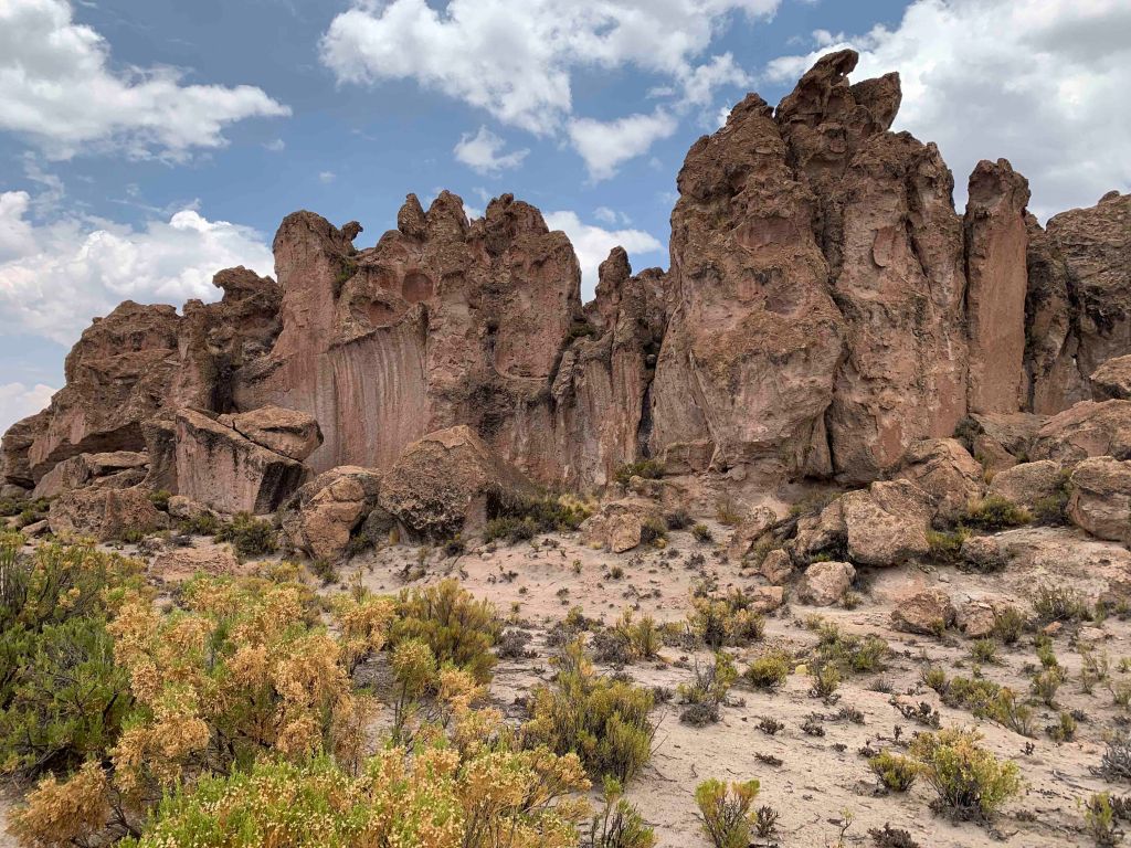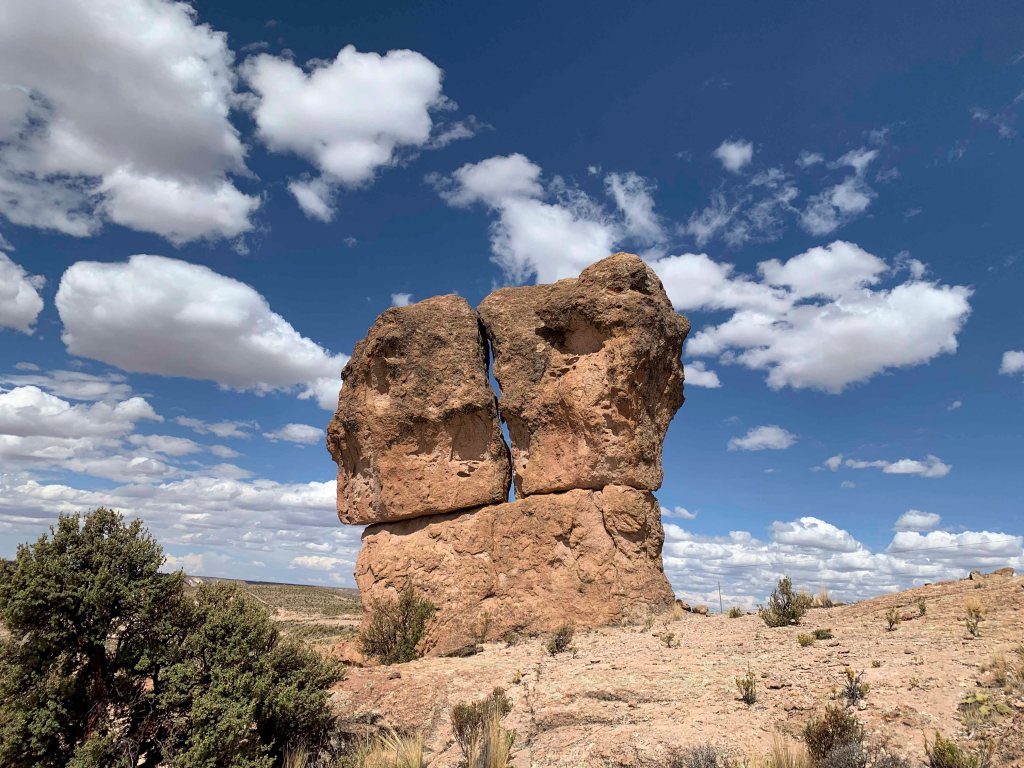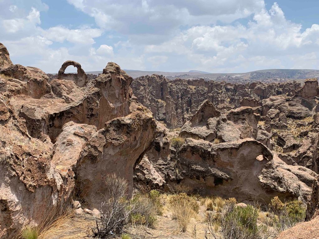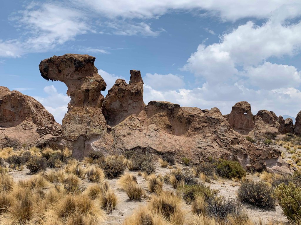 Mitten in der weiten Landschaft der Hochebene zwischen Sajama und Oruro wartete ein besonderes Highlight auf uns: Die Ciudad de Piedras von Pumir, eine ganze Stadt aus Gesteinsformationen. Zusammen mit Marcelo und Sandra kletterten wir zwei Stunden durch die Felsen, hatten viel Spaß an den aberwitzigsten Vergleichen und entdeckten immer Neues. Bei einem fast kompletten Gerippe eines Lamas blieben wir eine Weile stehen und Marcelo erklärte uns, wie man das Alter des Tieres und sogar die mögliche Todesart anhand der Knochen und Zähne ungefähr bestimmen kann.