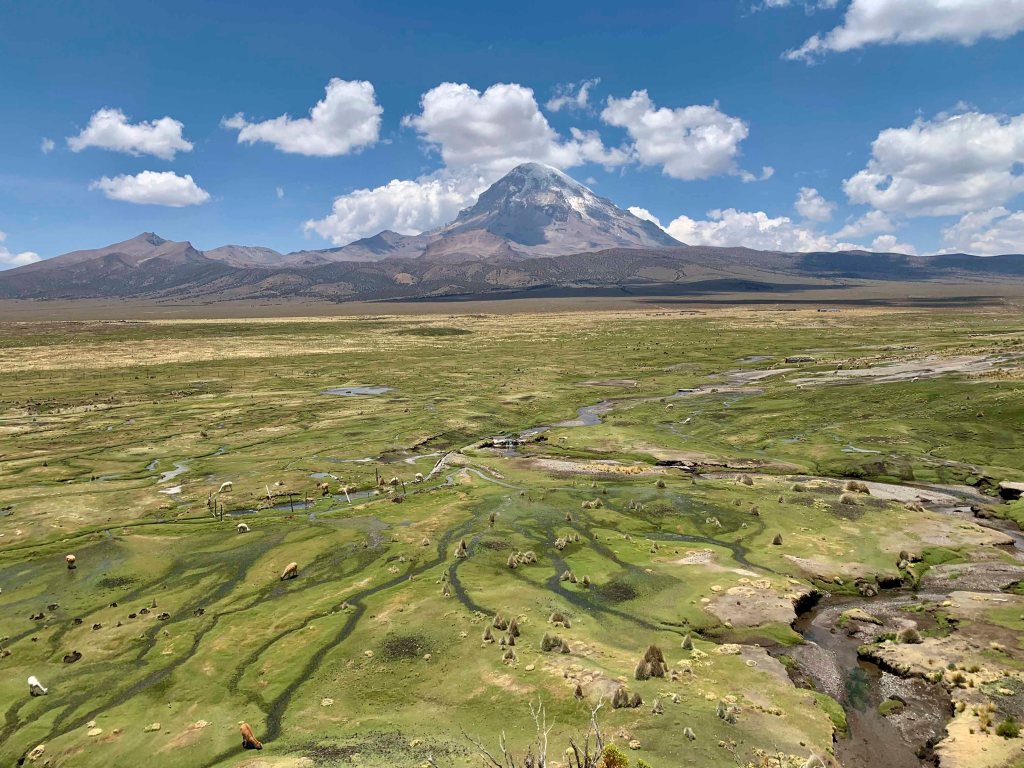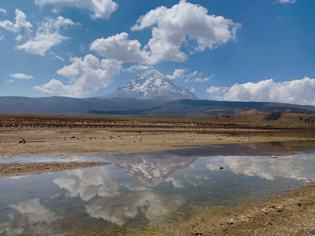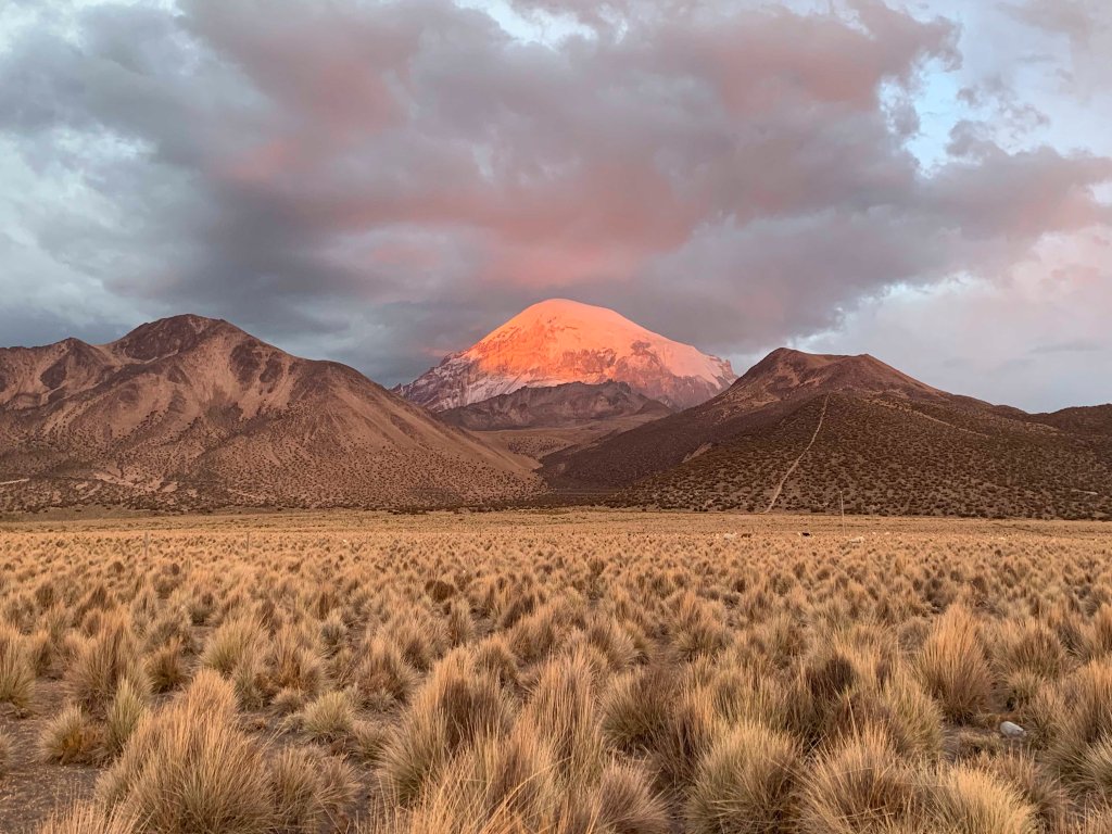 Dieser auf 4200 Metern gelegene Nationalpark trägt seinen Namen dem höchsten Berg Boliviens, dem Sajama, zu Ehren. Und dieser ist eigentlich auch aus jedem Winkel des Parks sichtbar, er dominiert bereits aus der Ferne die Zufahrtsstraße, dann Lagunen und die Flächen des Hochlands. Der Sajama ist majestätisch, egal ob von Wolken umgeben, gleich doppelt als Spiegelung oder im Licht der Abendsonne sogar orangerot eingefärbt…
