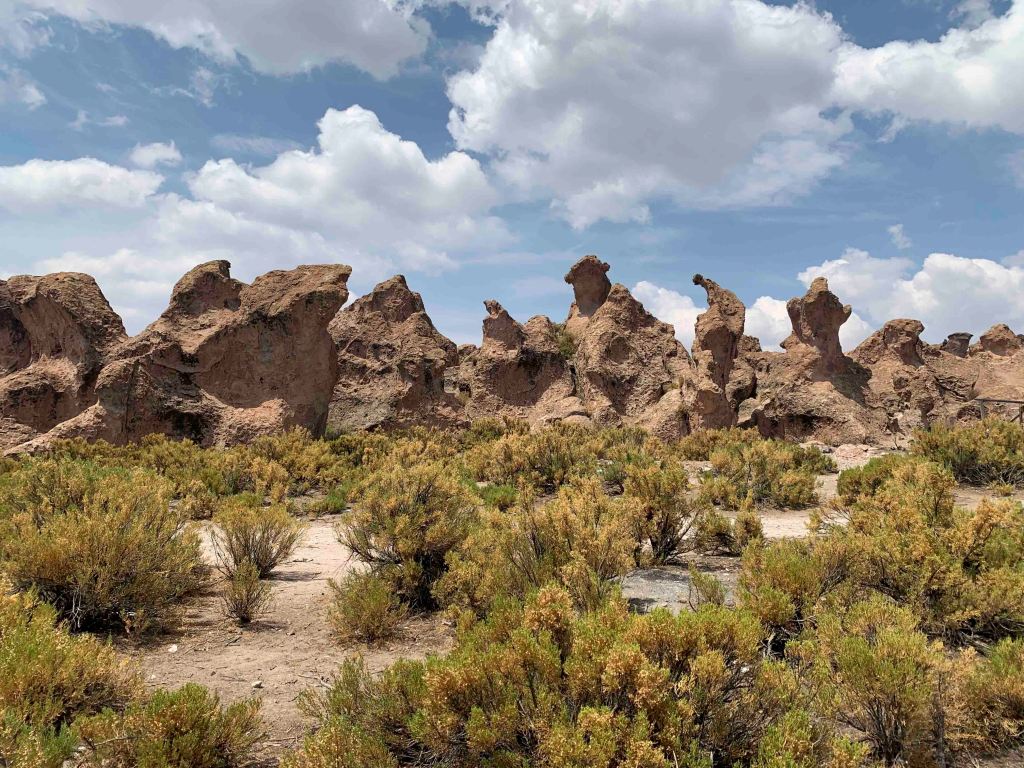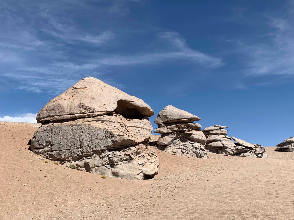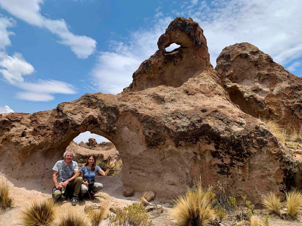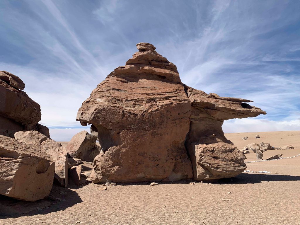 In Südbolivien zeigt sich immer wieder, dass die Natur eine großartige Künstlerin ist! Kaum hatten wir die Lagunen hinter uns gelassen, erwartete uns der nächste Höhepunkt: die Steinwüste Siloli. Hier hat der Wind gemeinsam mit schmirgelndem Sand unglaubliche Skulpturen wie den Steinbaum geformt. Es machte uns großen Spaß, zwischen den skurrilen Felsen herumzulaufen, wobei es durch den Wind überhaupt nicht so still und friedlich war, wie es auf den Bildern wirkt!