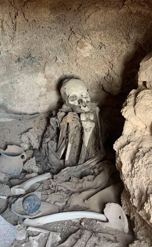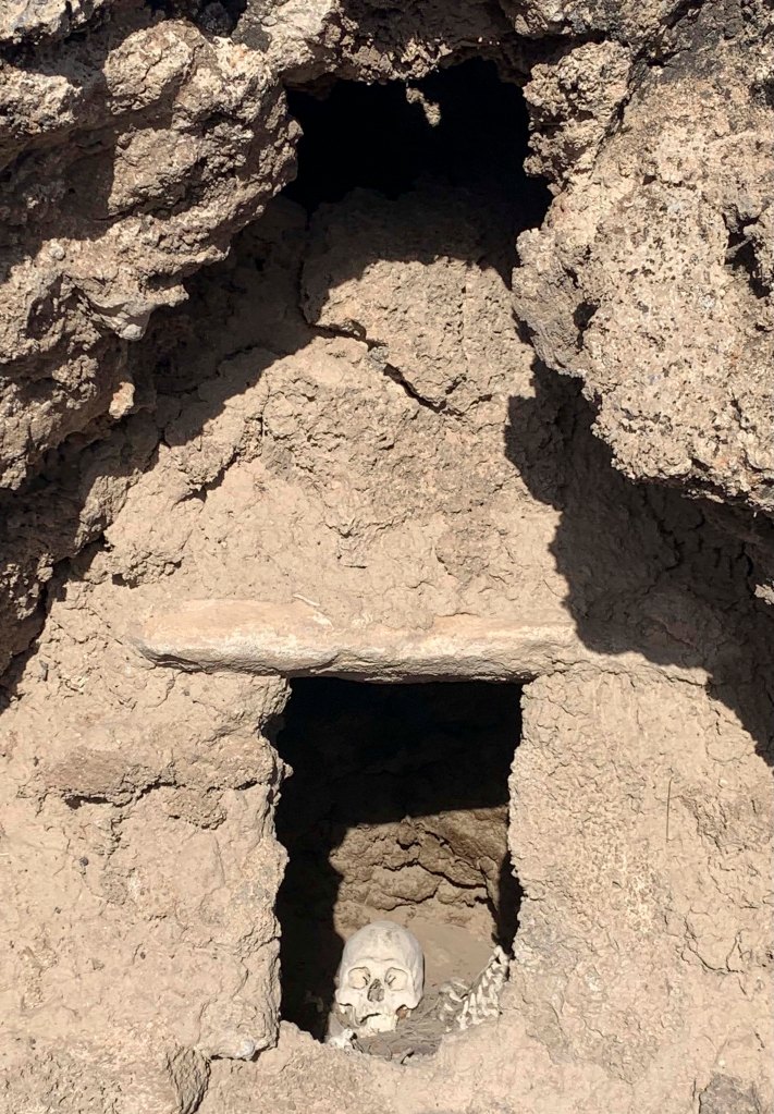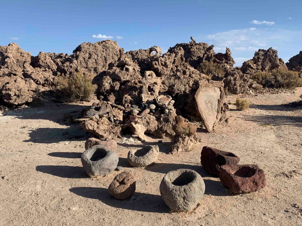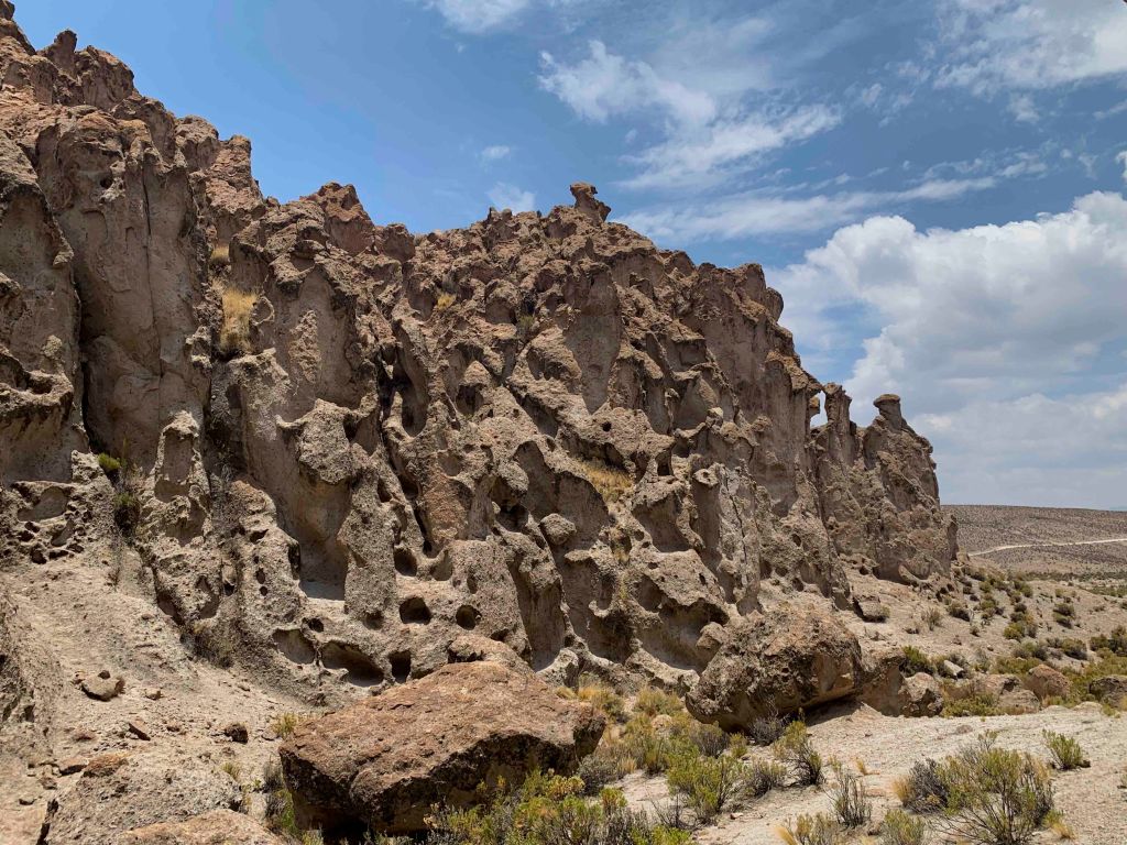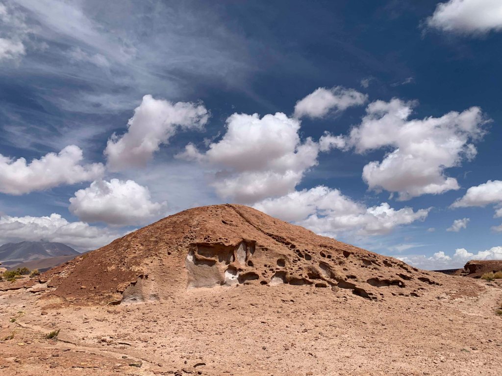 Südwestlich vom Uyuni gibt es am Rande der Ortschaft San Juan eine besondere Sehenswürdigkeit: die Nekropole und das Museum Kawsay Wasy. Hier in der Hochwüste befindet sich ein alter Friedhof der Aymara mit einer großen Anzahl an Grabmälern aus versteinerten Korallen, in denen sogar noch Gebeine und ganze Skelette lagern. Zum Teil sind auch Kleidungsstücke und Grabbeigaben erhalten. Wir waren erstaunt darüber, dass diese wertvollen Funde so im Freien gelassen werden, aber man erklärte uns, dass die extrem trockene Luft eigentlich die beste Umgebung dafür sei. – Wenn man in Betracht zieht, dass etliche der Kuppeln bereits ganz oder teilweise eingestürzt sind und es fast ständig windig ist, erscheint diese Erklärung nicht richtig überzeugend. Vermutlich ist eher Geldmangel der Grund dafür, dass hier noch so wenig archäologisch gearbeitet wurde. Auf jeden Fall war es sehr spannend!