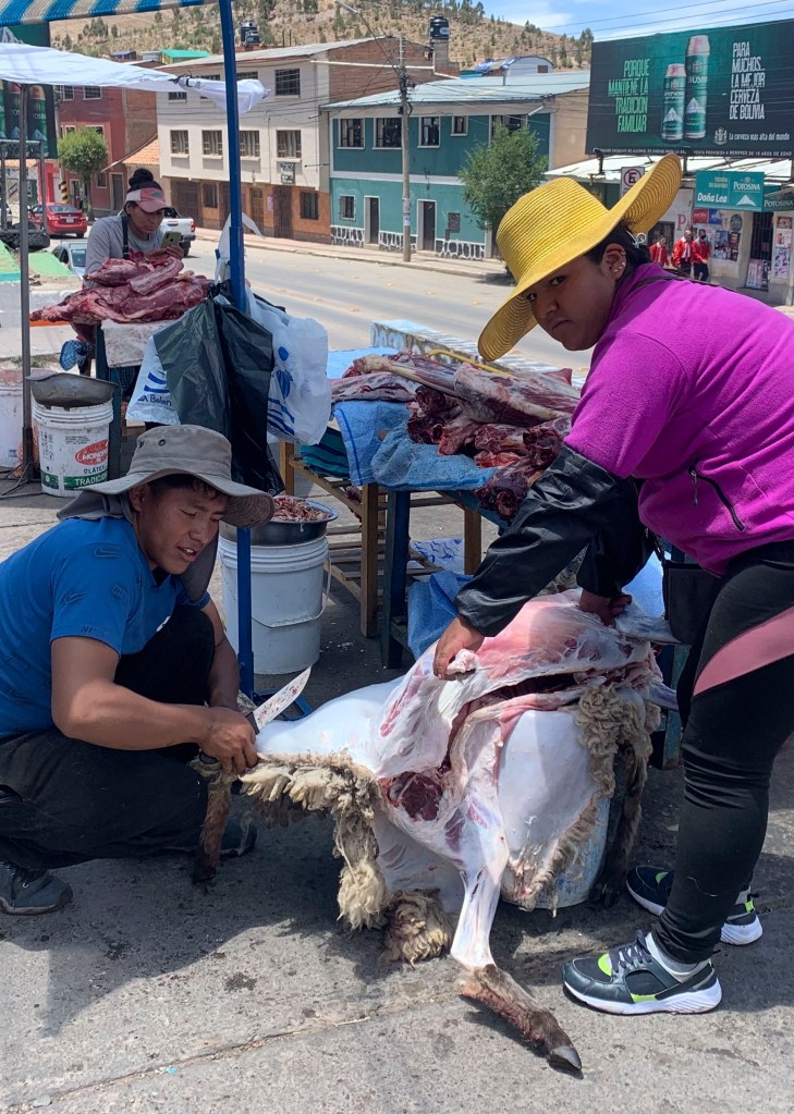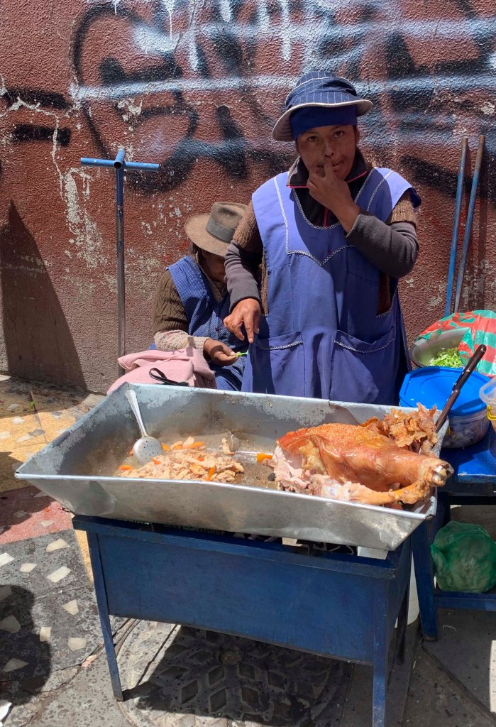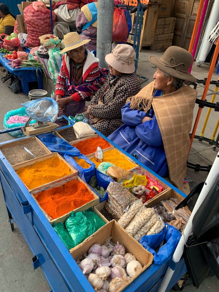 Über Oruro, immerhin Hauptstadt der gleichnamigen Provinz, ist nicht allzu viel zu sagen… Aber es gibt auch dort einen großen Markt, dessen Besonderheit die vielen Stände mit Coca-Blättern und -Tee sind. In keinem anderen südamerikanischen Land haben wir so viele dicke Coca-Backen gesehen wie in Bolivien! Die harmlose Wirkung (u.a. Unterdrückung von Müdigkeit und Hungergefühlen) hilft bei harter Arbeit, wir selbst sind aber nur beim Tee geblieben, der eindeutig kleine Beschwerden durch die große Höhe mindert. – Außer Coca bot der Markt vielfarbige Gewürze, unglaubliche Kuchen und Torten sowie Eselsmilch, die das reinste Wundermittel sein soll.