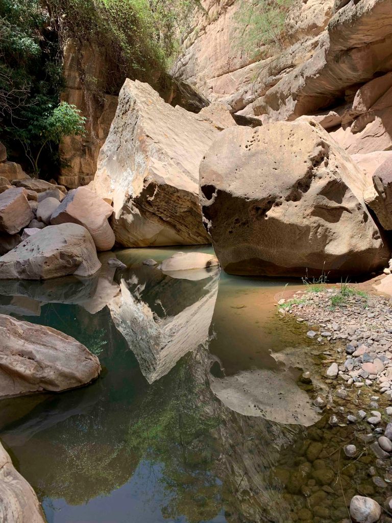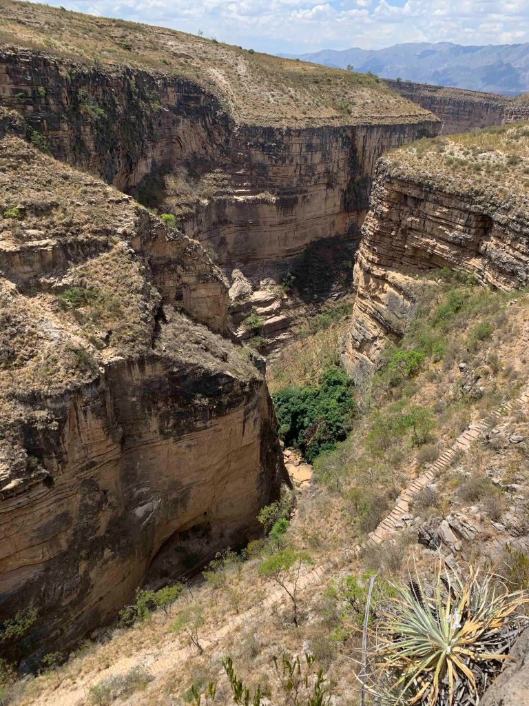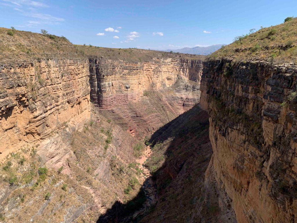 Wer den Torotoro NP besucht, sollte sich unbedingt Zeit für eine Wanderung in den großen Canyon nehmen! Die Tour ist landschaftlich sehr beeindruckend und abwechslungsreich; die lange Treppe in den Canyon hinunter macht beim Abstieg seltsamer Weise mehr Spaß als beim Aufstieg auf dem Rückweg… Aber unten auf der Sohle verbirgt sich ein kleines Paradies. Viel Grün am Fluss entlang, große Felsen, die den Flusslauf ein bisschen abenteuerlich machen, und das Beste: mehrere Becken unter kleinen Wasserfällen, in denen man herrlich baden kann!
