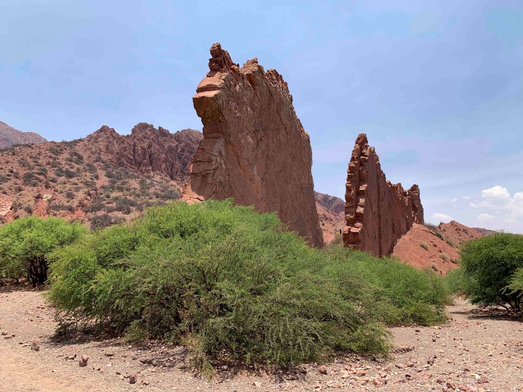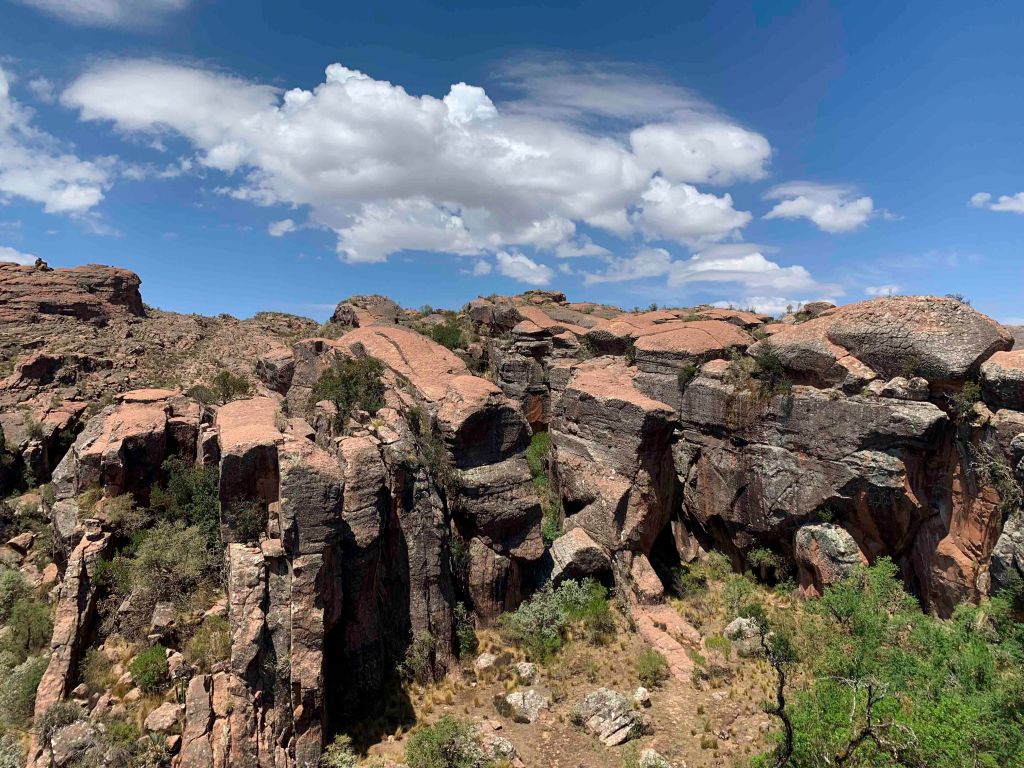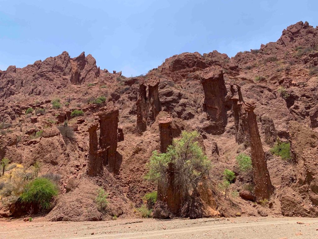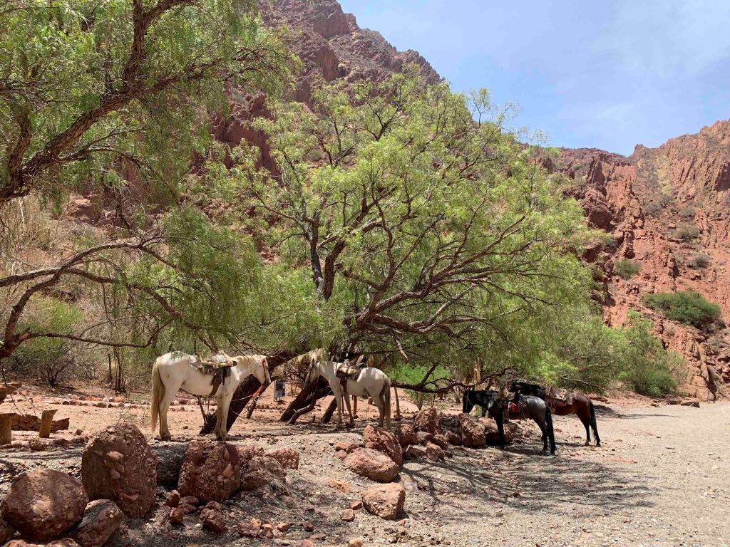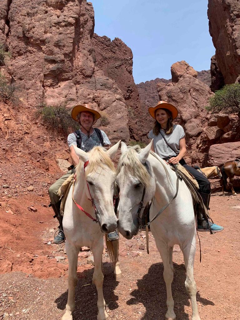Da vor allem die roten Felsen uns an den Südwesten der USA erinnerten, dachten wir uns, warum nicht mal ein bisschen Wilder Westen spielen? Also nutzten wir am zweiten Tag die Möglichkeit für einen mehrstündigen Ausritt zur Puerta del Diablo und in den Cañon de Duende. Die Schluchten waren wie geschaffen dafür, sie auf dem Pferderücken zu erkunden. Unsere Pferde konnten sich zum Glück gut leiden, sodass es ein entspannter Ausflug für alle wurde und auch Hugo seinen ersten Ausritt genießen konnte. Am Nachmittag fanden wir es dann herrlich, mal ein Hotel mit Pool zu haben, in dem wir uns gemütlich von Hitze und Staub erholten!