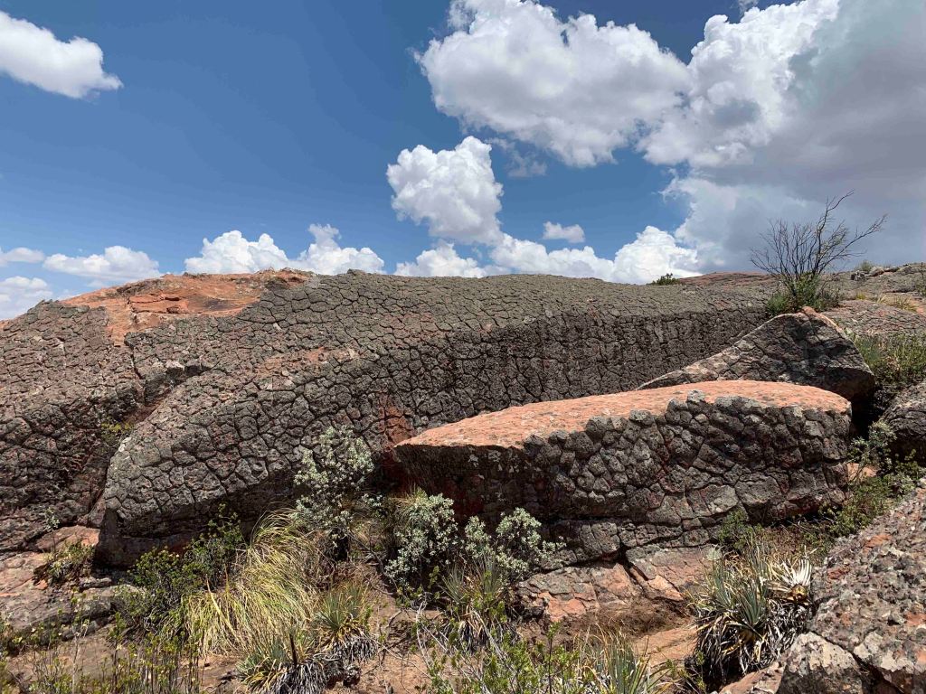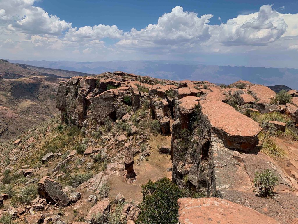 Als Felsenfans stand für uns natürlich auch die Ciudad de Cites (Steinstadt) auf dem Programm. Sie erstreckt sich auf einem hohen Plateau, das man im Jeep nach einer Stunde Fahrt auf übler Piste erreicht – aber der Ort ist großartig! Viele der großen Felsbrocken haben eine Oberfläche, die genau wie die Haut von Riesenechsen aussieht, schmale Spalten wechseln sich mit weiten Aussichtspunkten ab und es gibt mehrere Höhlen, die eine tolle Atmosphäre haben. Mein persönlicher Lieblingsfelsen war das um die Ecke schauende Mammut. Es gibt im Torotoro Park nicht nur Spuren von Dinosauriern, sondern auch einen Friedhof der Schildkröten. In einigen ungewöhnlich roten Hügeln wurden eine ganze Menge versteinerte Schildkrötenpanzer gefunden, die man inzwischen zwar durch Repliken ersetzt hat, aber die Wirkung einer verblüffenden Stätte ist geblieben. Sie beweist anschaulich, dass dort überall einmal Meer war, was man sich sonst irgendwie nicht richtig vorstellen kann…