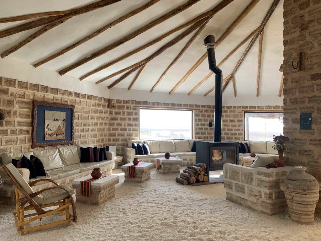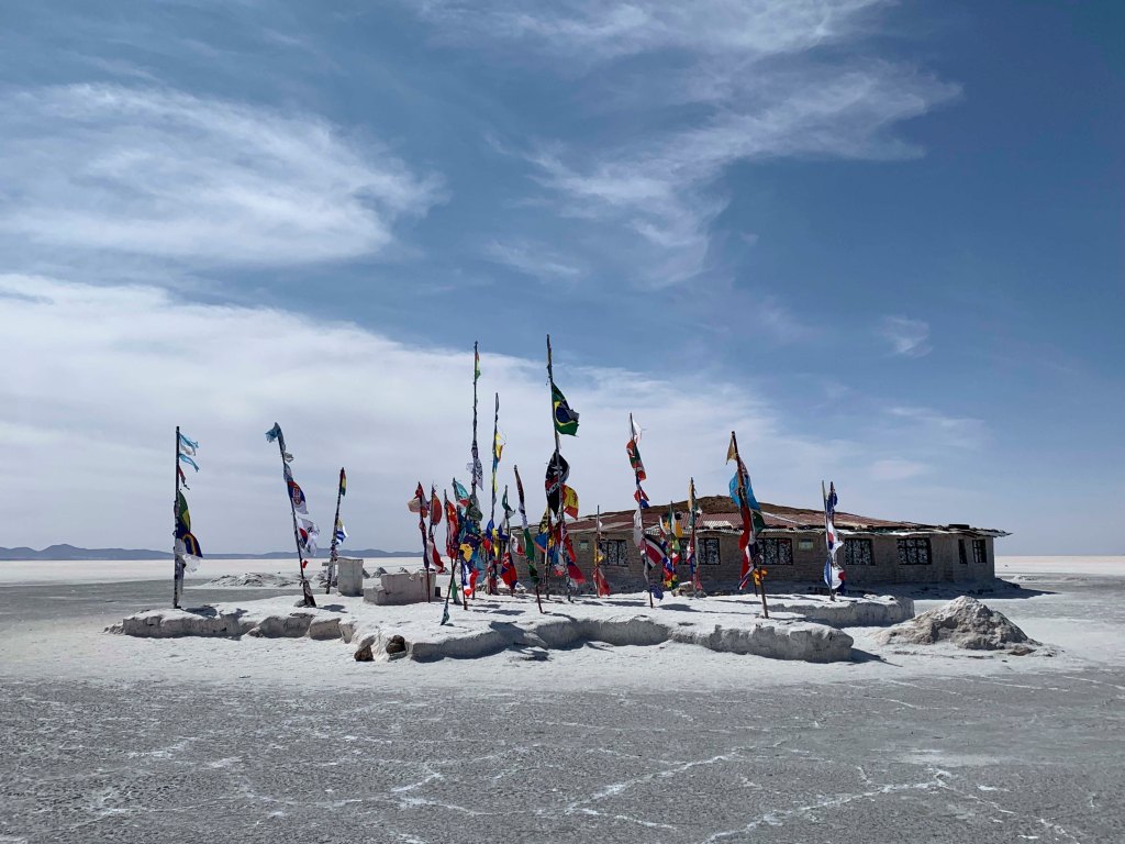 Am Abend erreichten wir schließlich das Ufer des Salzsees bei Colchani, wo wir im Salzhotel „Luna Salada“ stilvoll übernachteten: Das ganze Gebäude besteht aus Salzblöcken und auch der Fußboden ist größtenteils mit Salz bestreut. Außerdem gab es sehr leckeres Essen, was will man mehr?