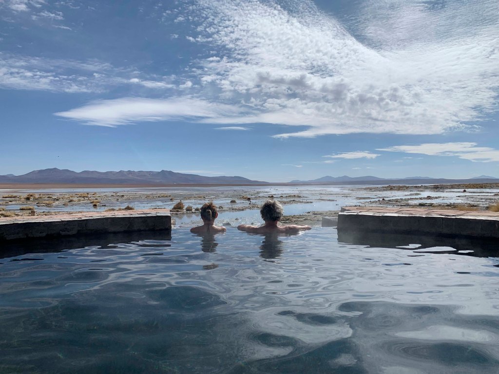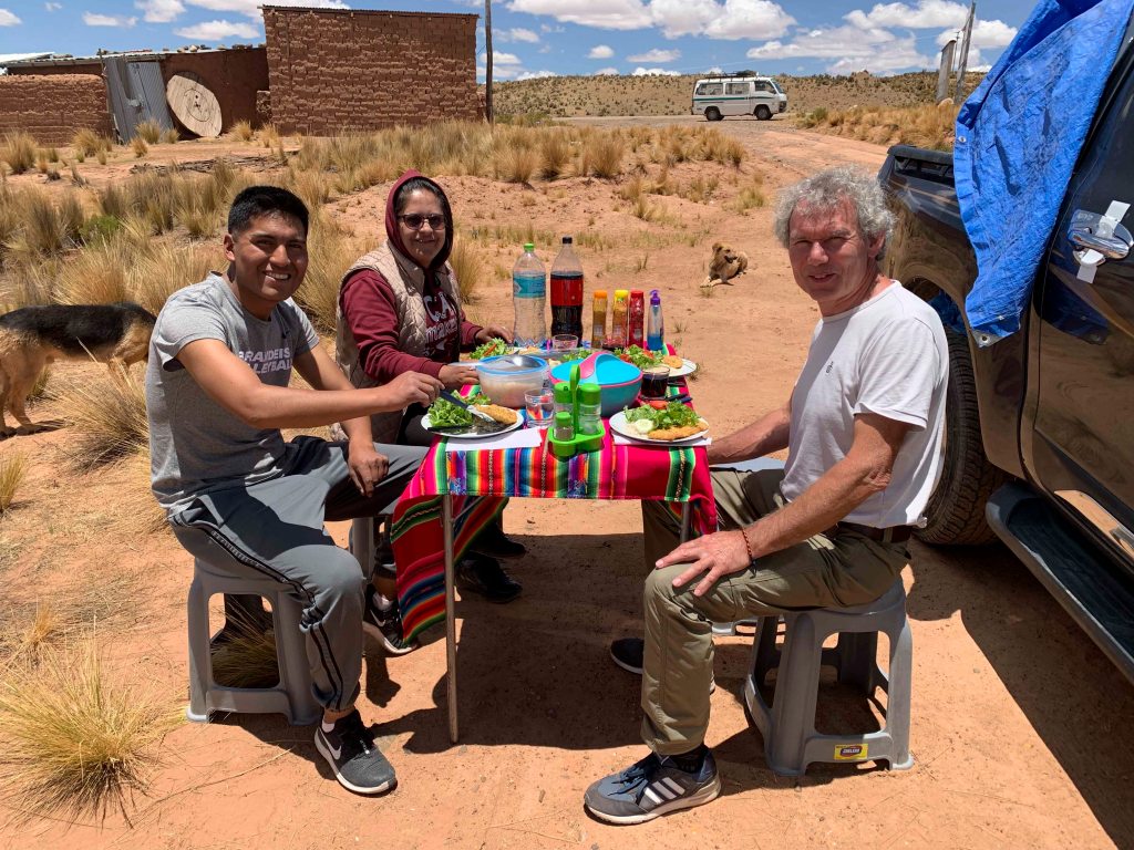 Verbunden durch die langen Fahrten mit bolivianischer Musik, Muskelkater nach dem Ausritt, zerkratzte Waden nach der Bonuswanderung am Tunupa und schließlich das himmlische Thermalbad an der Lagune, fiel uns allen der Abschied richtig schwer. Wir konnten uns erstmal gar nicht vorstellen, wirklich alleine weiterzumachen. Es war einfach eine tolle gemeinsame Zeit mit Hugo und Arminda!