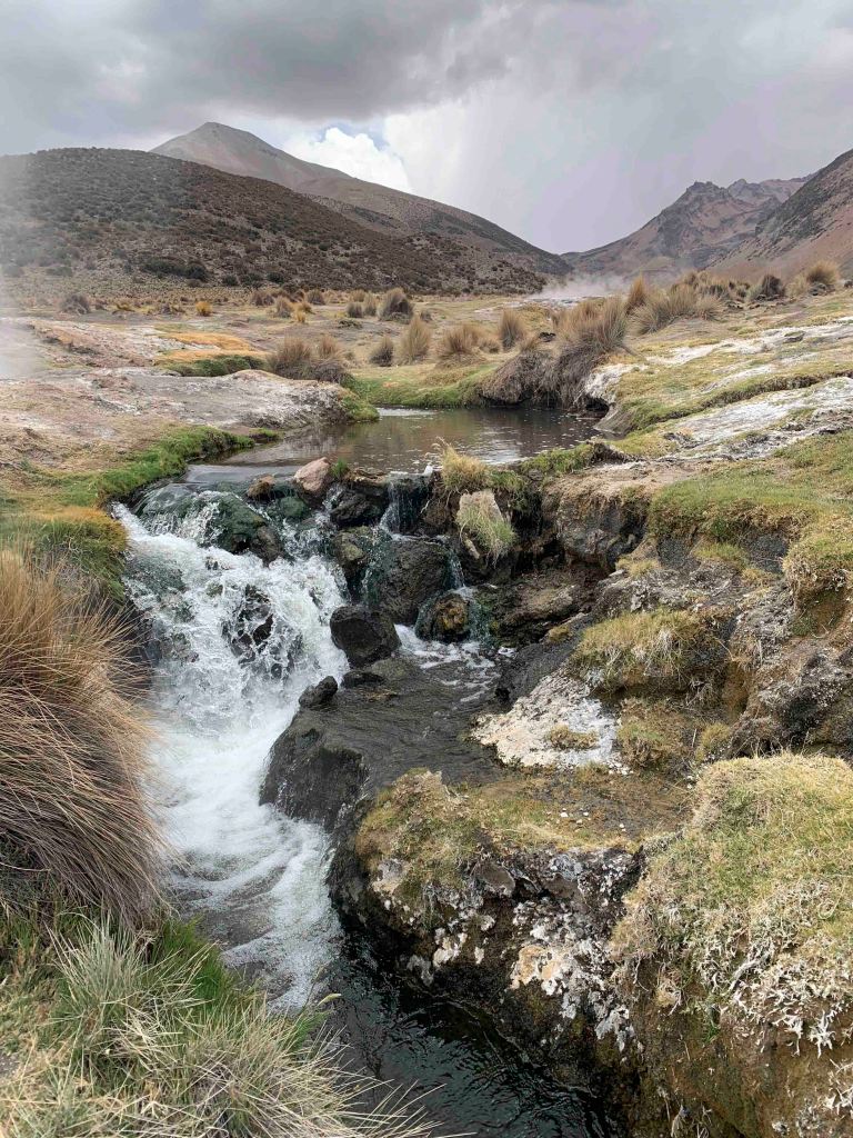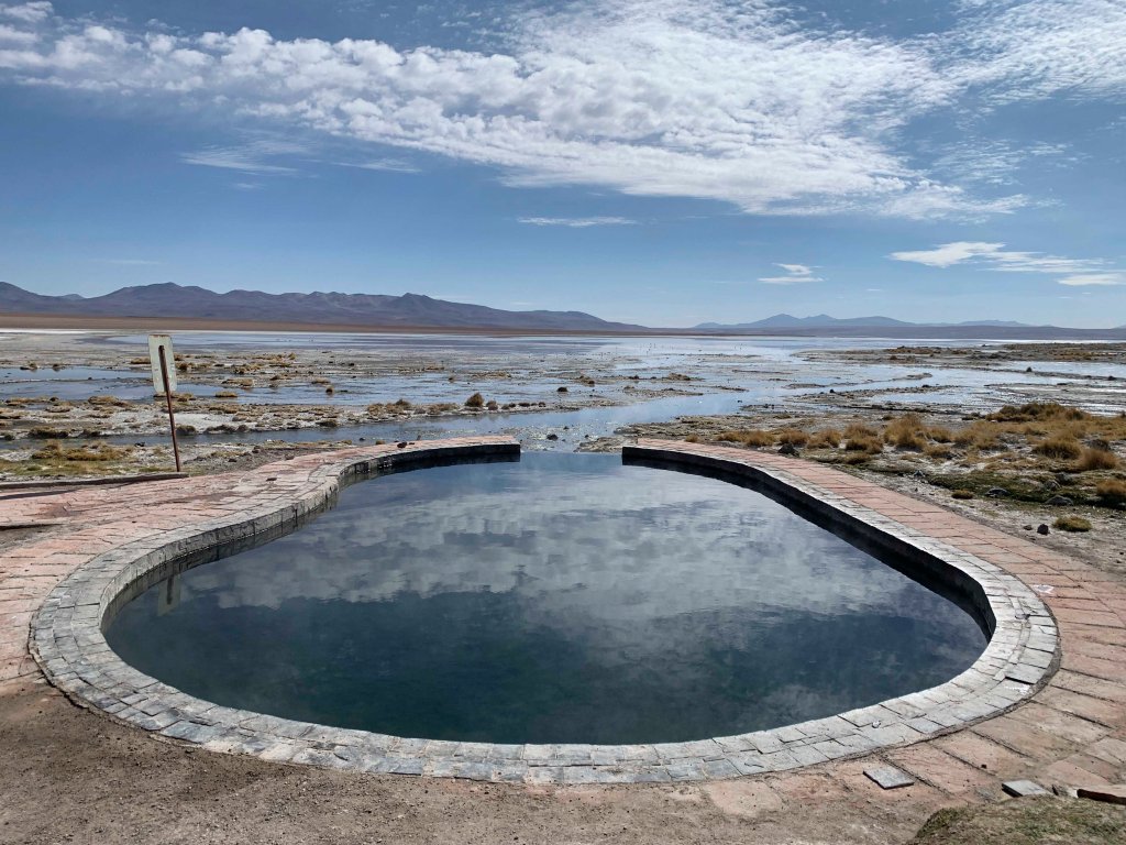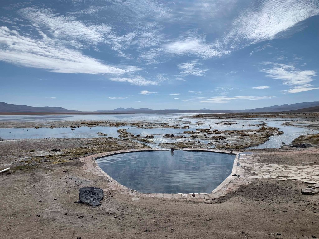 Nach der Tour über das Geysirfeld fuhren wir zur Laguna Chalviri, die nicht nur einfach schön anzuschauen ist, sondern auch noch Thermalquellen bietet, in denen man auf immer noch 4500 Metern entspannt baden kann. Pools mit solcher Aussicht findet man ganz sicher nicht oft!