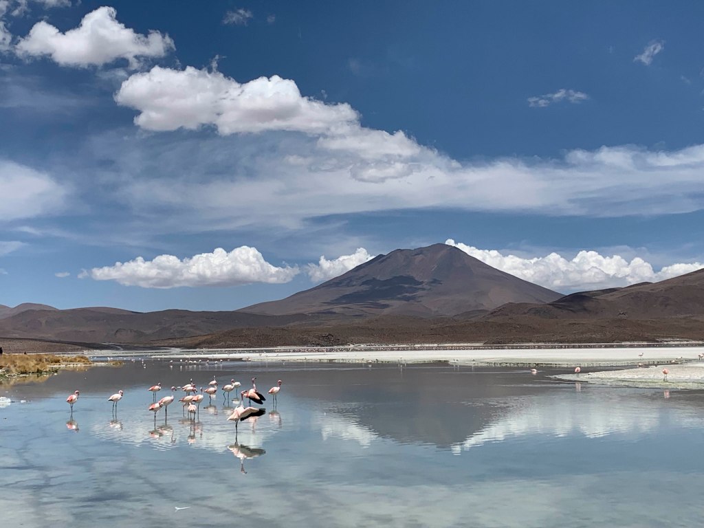 Und dann gab es nur noch zwei kürzere Stopps an der Laguna Verde und Blanca, jeweils von hohen Andengipfeln oder Vulkanen umgeben, bevor wir uns endgültig von Hugo, Arminda, dem treuen Jeep und dem schönen Bolivien verabschieden mussten…