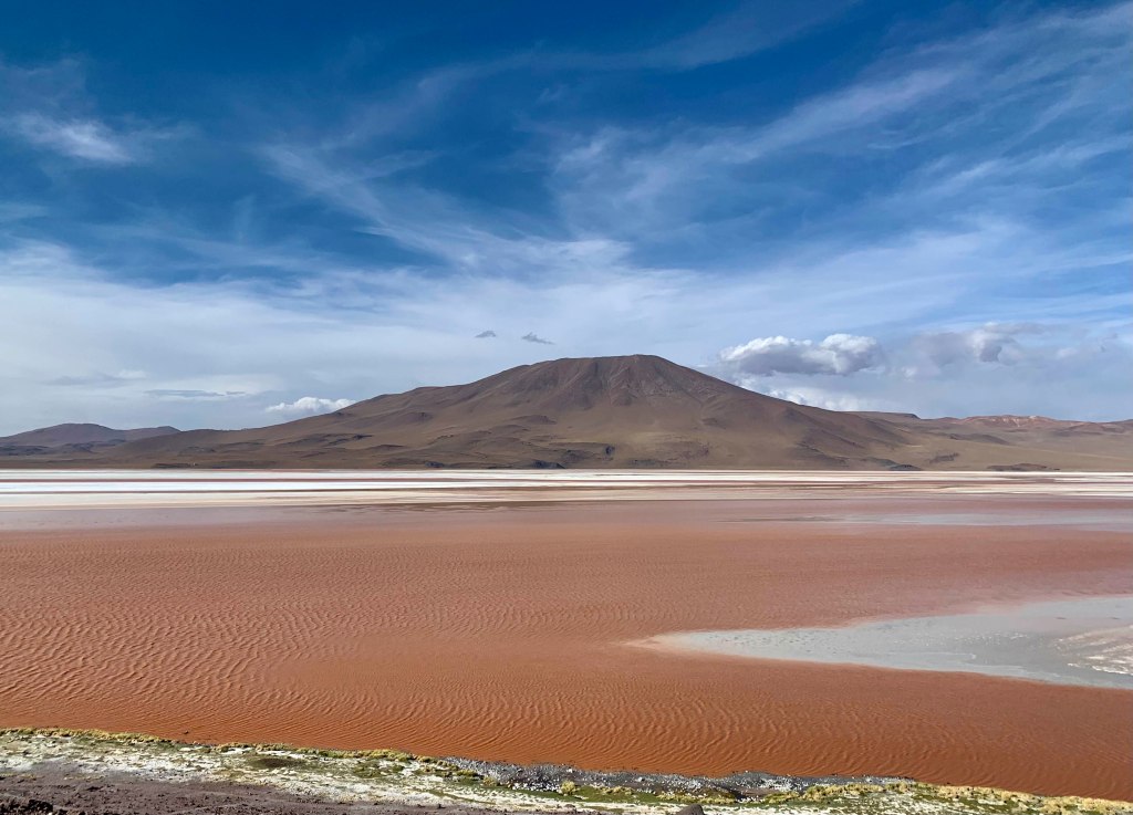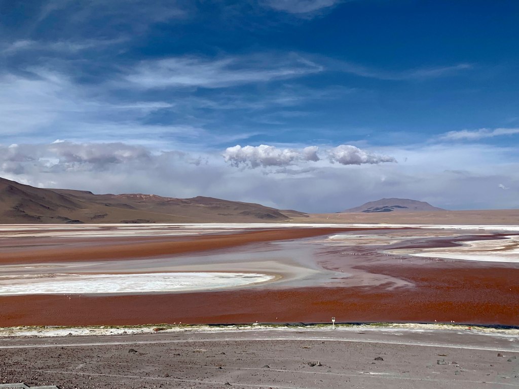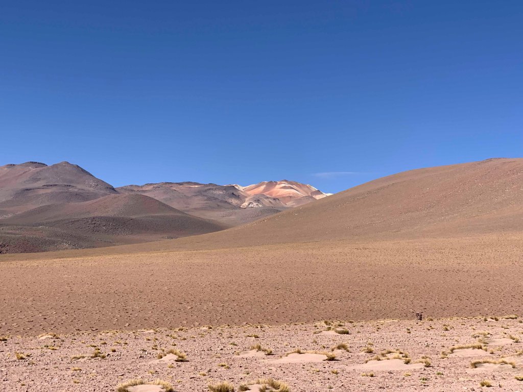 Weiter Richtung Grenzübergang und damit dem Ende unserer Bolivientour entgegen kamen wir an Bergmassiven vorbei, die fast als Rainbow Mountains durchgehen könnten. Die Schneereste auf einigen davon wirkten im Wüstenklima ganz surreal, aber wunderschön!