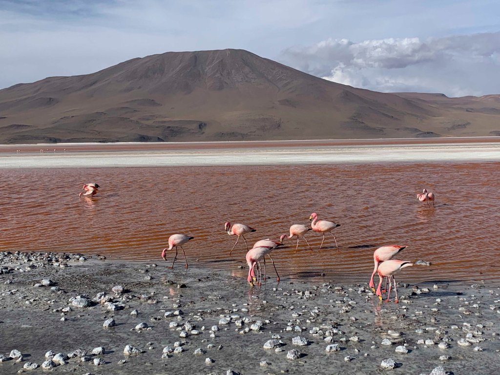 Am Ende dieses ereignisreichen Tages erreichten wir schließlich die Laguna Colorada, die mit ihren Farben und ihrer Größe irgendwie die Königin der dortigen Lagunen ist. Die weite, karge Landschaft erweist ihr gebührend Respekt und als Mensch fühlt man sich recht klein…