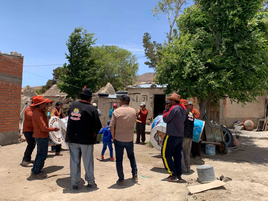 Unser Weg führte uns dann ans Nordufer des Salar de Uyuni, nach Jirira. Das ist ein winziges Dorf am Fuße des Vulkans Tunupa, wo wir zunächst keine Menschenseele entdecken konnten. Erst als wir der plötzlich einsetzenden Musik folgten, stellten wir fest, dass sämtliche Bewohner sich zu einer Fiesta versammelt hatten, zu der wir gleich eingeladen wurden.