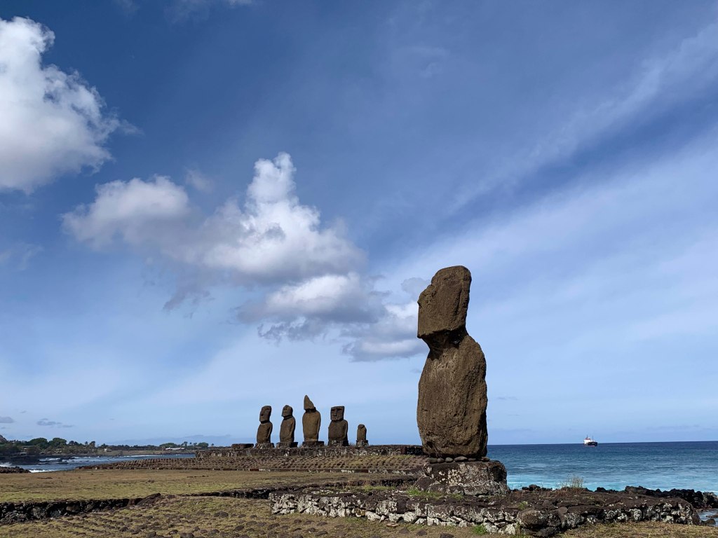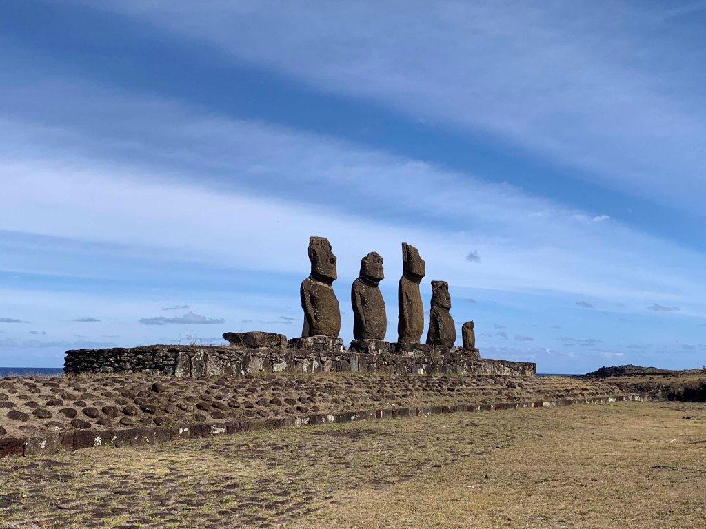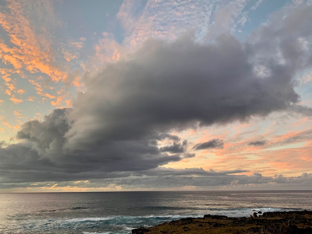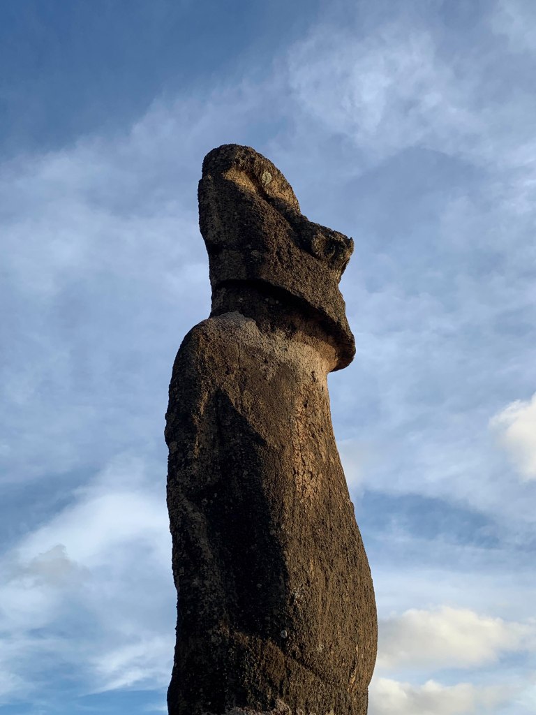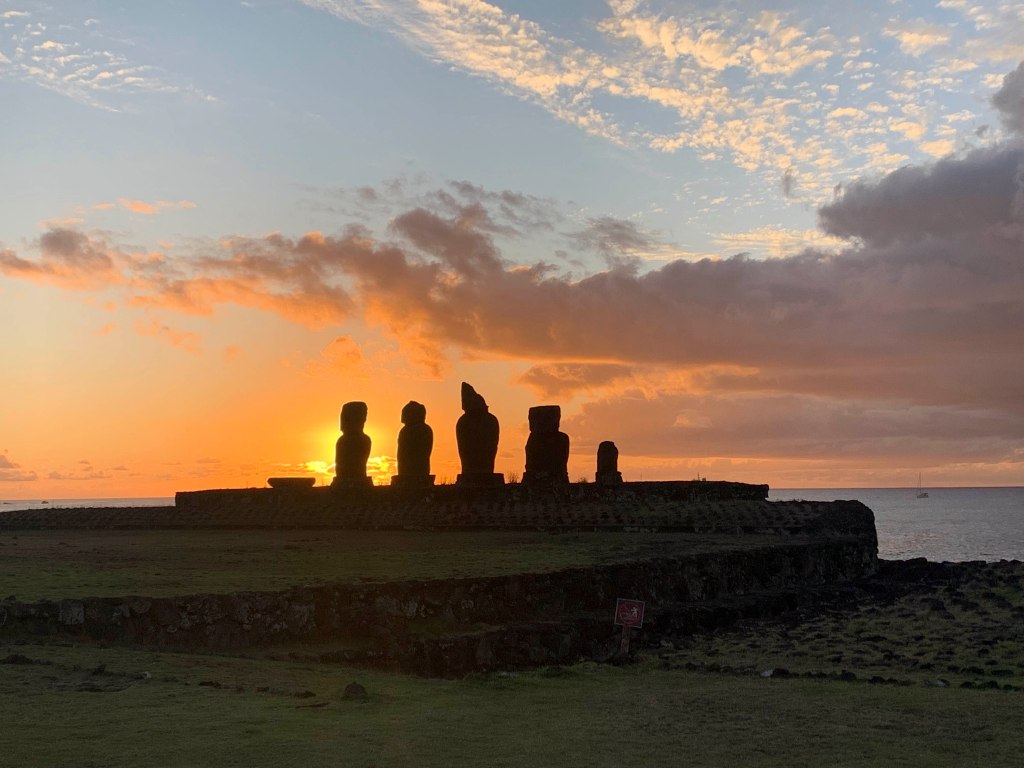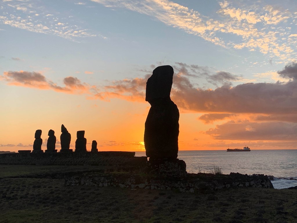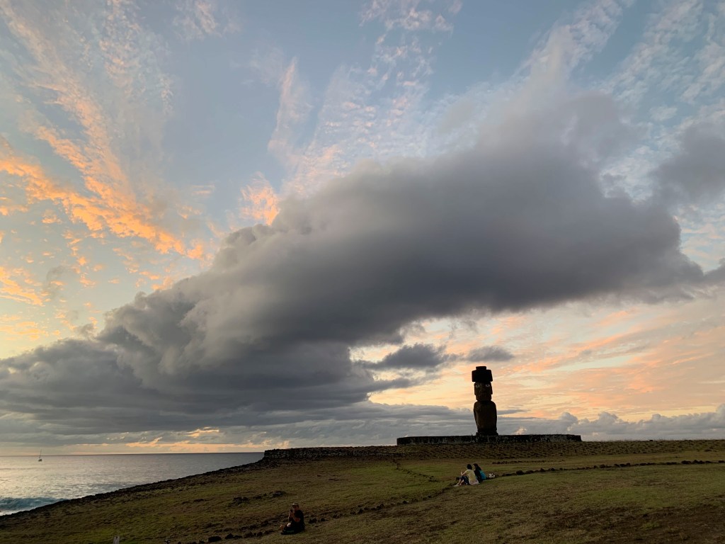Aber natürlich sind die eigentlichen Stars von Rapa Nui die Moai, die mehrere Meter hohen und etliche Tonnen schweren Steinfiguren mit ihrer einzigartigen Ausstrahlung! Nur fünf Minuten von unserer Unterkunft entfernt befindet sich Tahai, ein Platz mit drei großen Plattformen und insgesamt sechs Moai direkt an der Küste und mit perfekter Ausrichtung für wunderbare Sonnenuntergänge. Die Magie dieses Ortes zog uns immer wieder an, so dass wir eigentlich jeden Tag mindestens einmal dort waren, abends stets in Gesellschaft vieler anderer andächtiger Inselbesucher. Das sich verändernde Licht und die Wolken schienen dabei den Moai die Ehre zu erweisen und wir genossen diesen Anblick sehr!