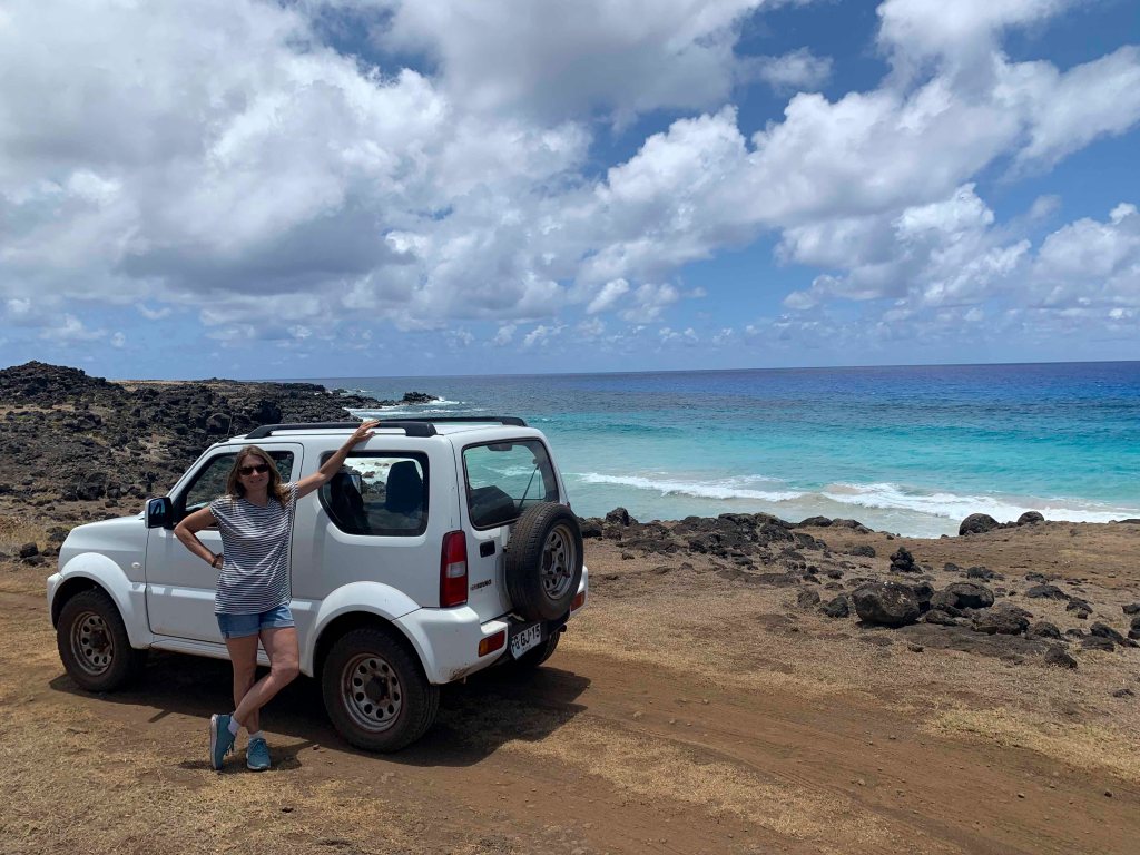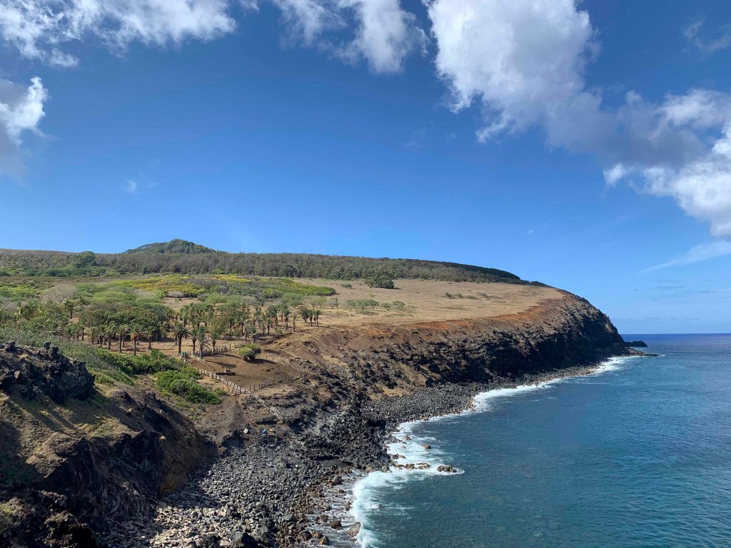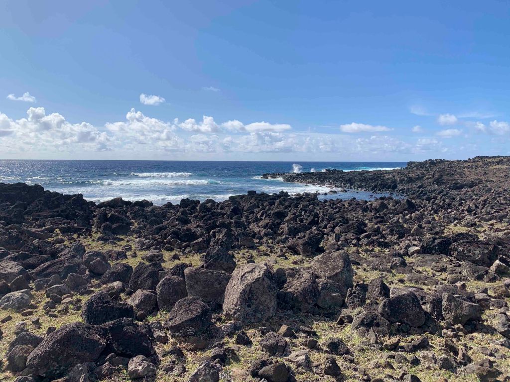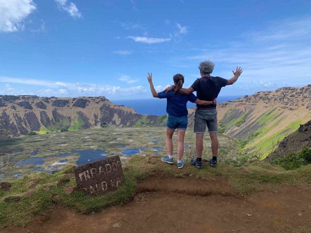 Die Osterinsel oder Rapa Nui, wie der eigentliche Name lautet, war für uns immer ein sehr fernes Ziel. Über 3700 Kilometer vom chilenischen Festland entfernt mitten im Pazifik gelegen, erschien sie uns irgendwie mystisch und unerreichbar. – Als wir dann im Laufe der großen Reise über unsere noch unklaren Weihnachtspläne nachdachten, schlich sich diese Destination immer wieder in unsere Gedanken… Und nach einigem Abwägen zwischen hohen Kosten, Flugscham und „Jetzt sind wir mal relativ in der Nähe“ (momentan kann man nur von Santiago aus nach Rapa Nui fliegen) entschieden wir uns für die Insel. Eine gute Entscheidung! Schon bei der Ankunft im mild-tropischen Klima erfasste uns ein Glücksgefühl, das vielleicht auch mit den hübschen Blumenketten zu tun hatte und uns in der folgenden Woche nicht mehr verließ.