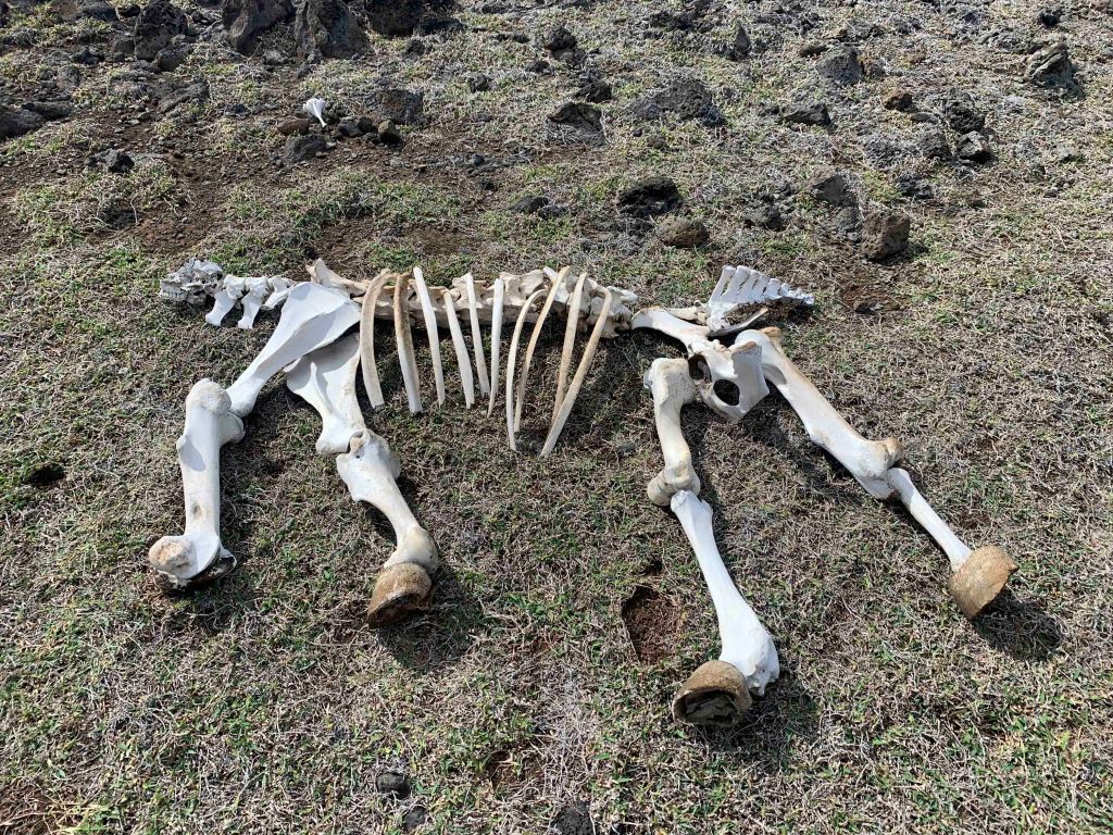 Trotzdem gelang es uns dann, das richtige Maß an freier Bewegung zu finden und die vielen unglaublich schönen Eindrücke rund um Rapa Nui wie die Moai von Tongariki oder das Lavagestein in all seinen Formen einzufangen. – Übrigens gibt es dort sehr viele frei laufende Pferde, die gelegentlich an der wilden Küste ihr vorzeitiges Ende finden, was man an etlichen Skeletten sehen kann. Bei den Knochen auf dem Foto haben wir allerdings ein wenig im Arrangement nachgeholfen…